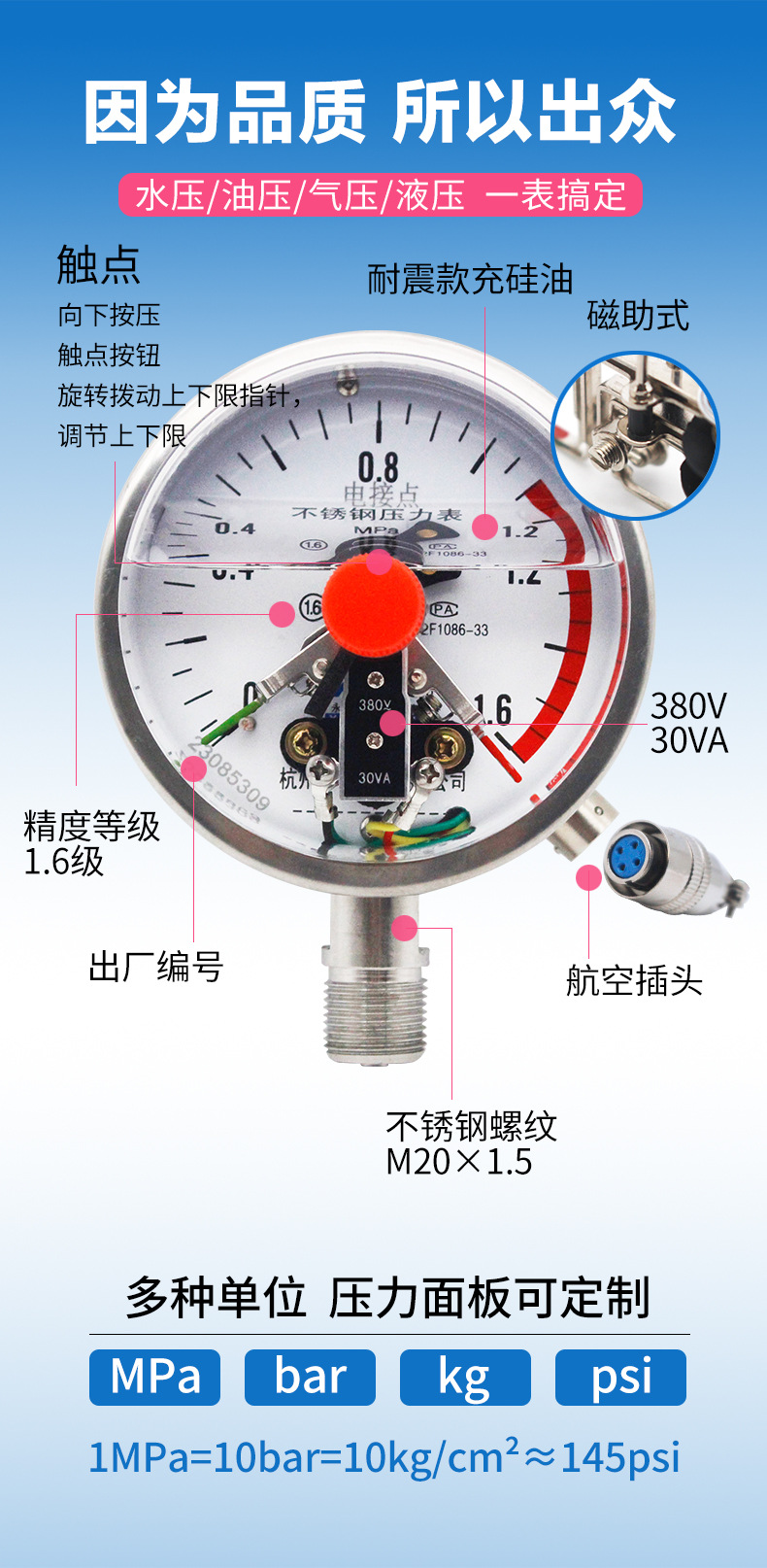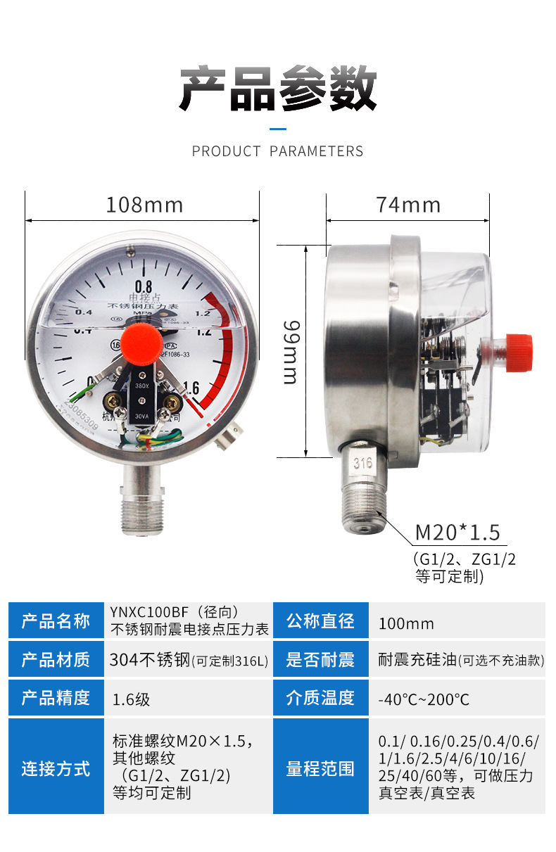 - What You Get: One YNXC100BF Stainless Steel Electrical Contact Pressure Gauge. Manufacturer direct supply ensures quality and complete specifications to meet diverse measurement needs.