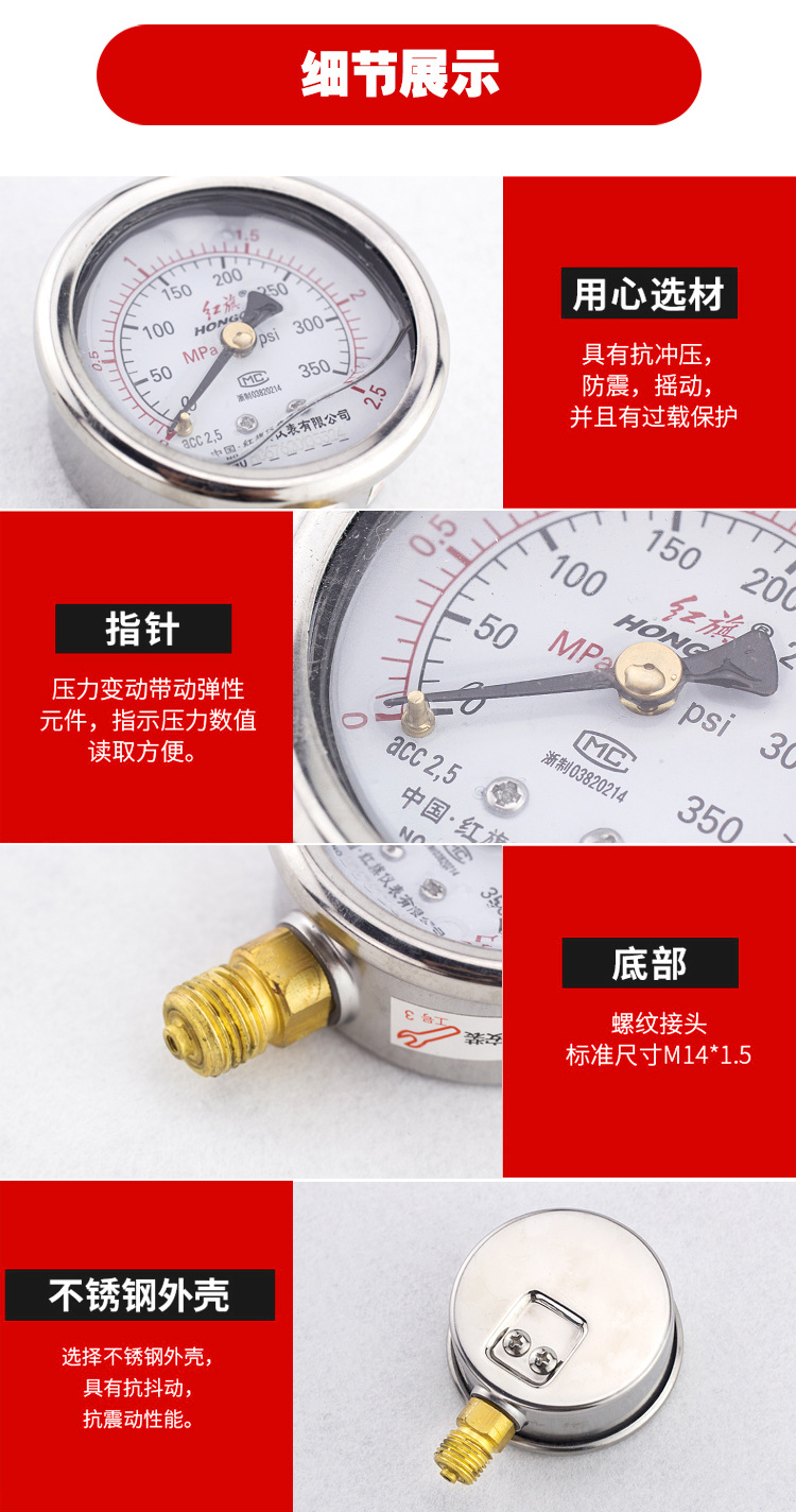 - Key Specs & Performance: 60mm nominal diameter, 2.5 accuracy class, and M14 connection for precise and stable pressure readings across a wide range of -0.1 to 60 MPa.