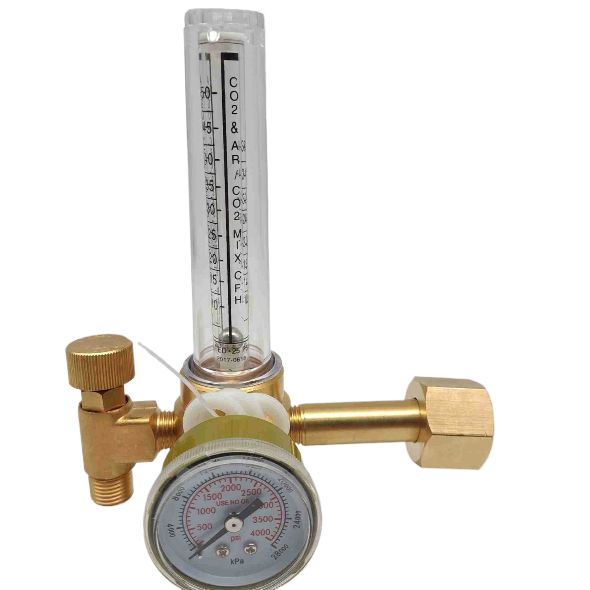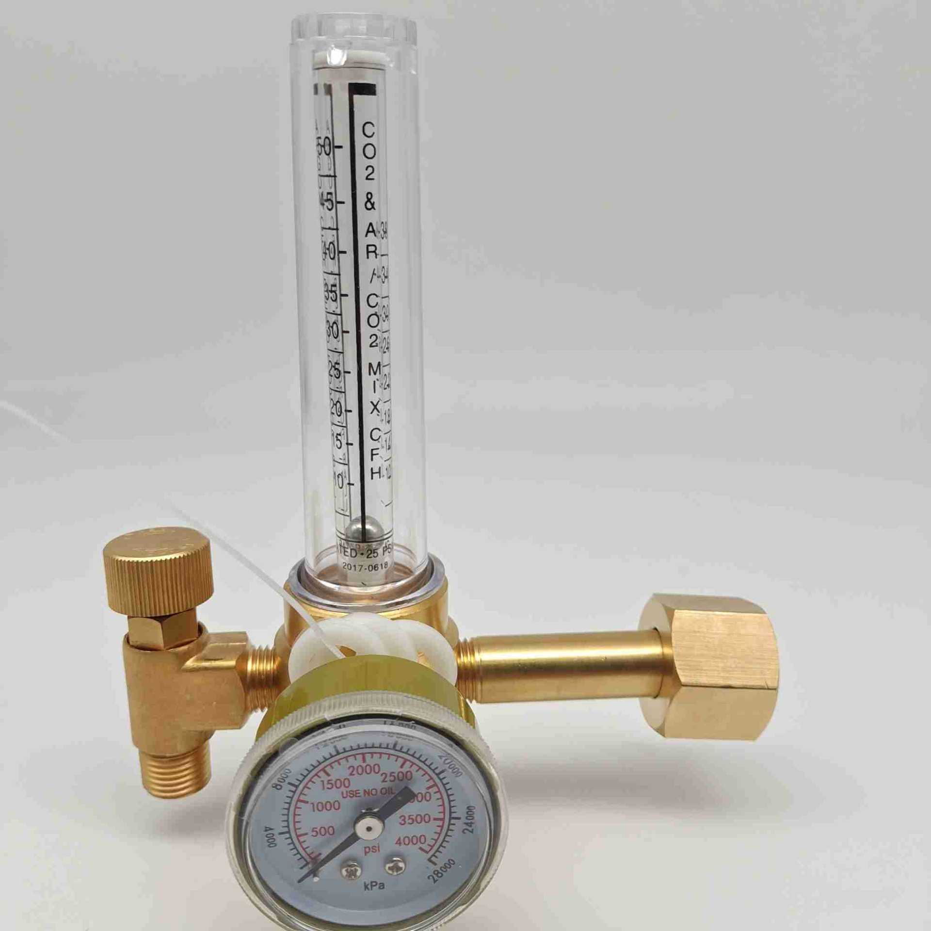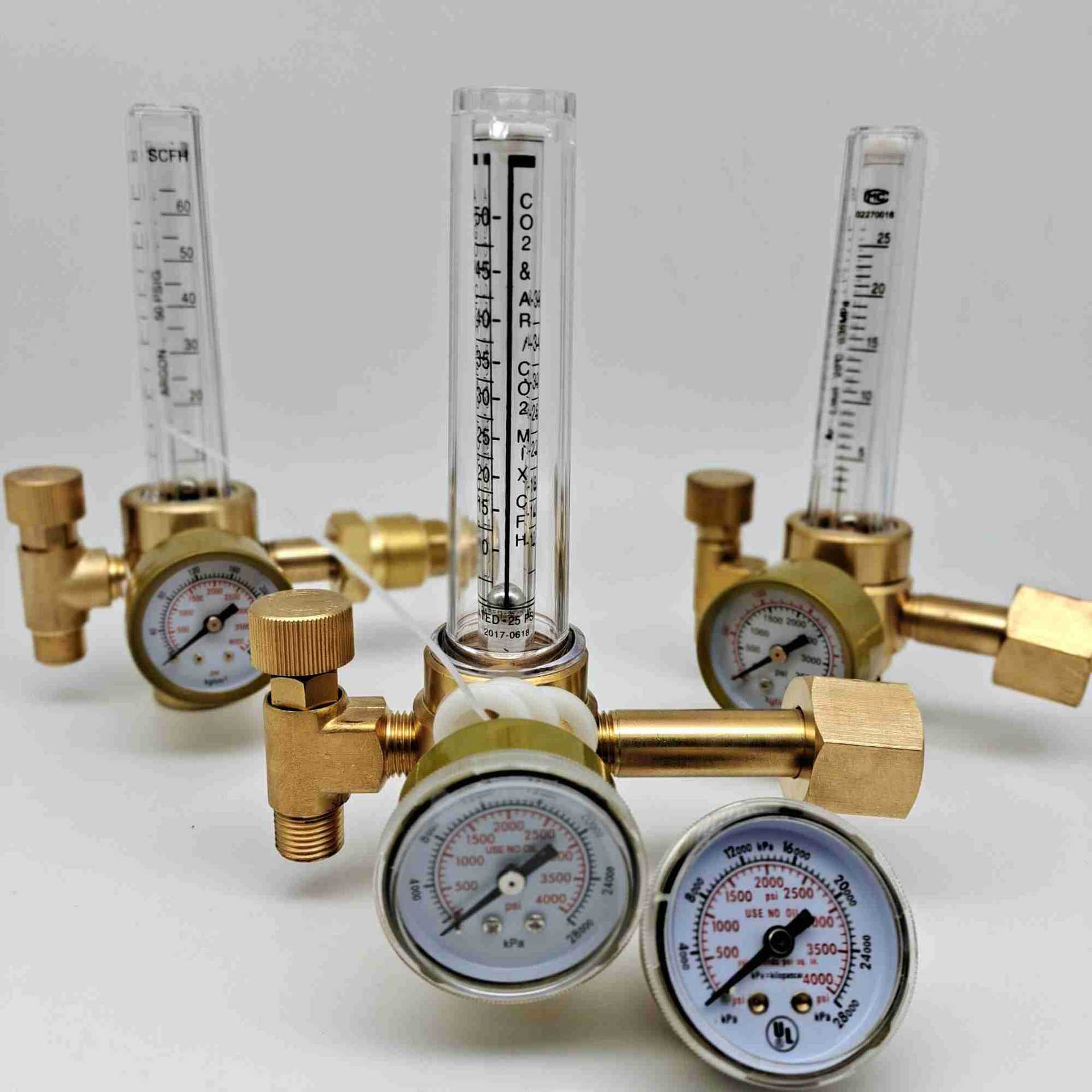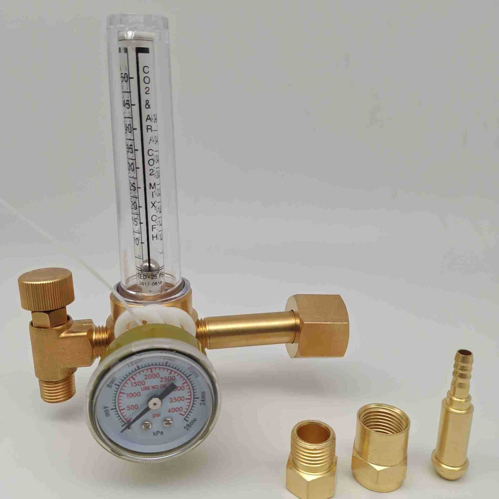 - Core Specs & Performance: Features an input pressure gauge up to 4000 psi (28000 kPa) and a flow meter with a range of 0-50 SCFH CO2 MIX.CFH, providing accurate and stable gas delivery.