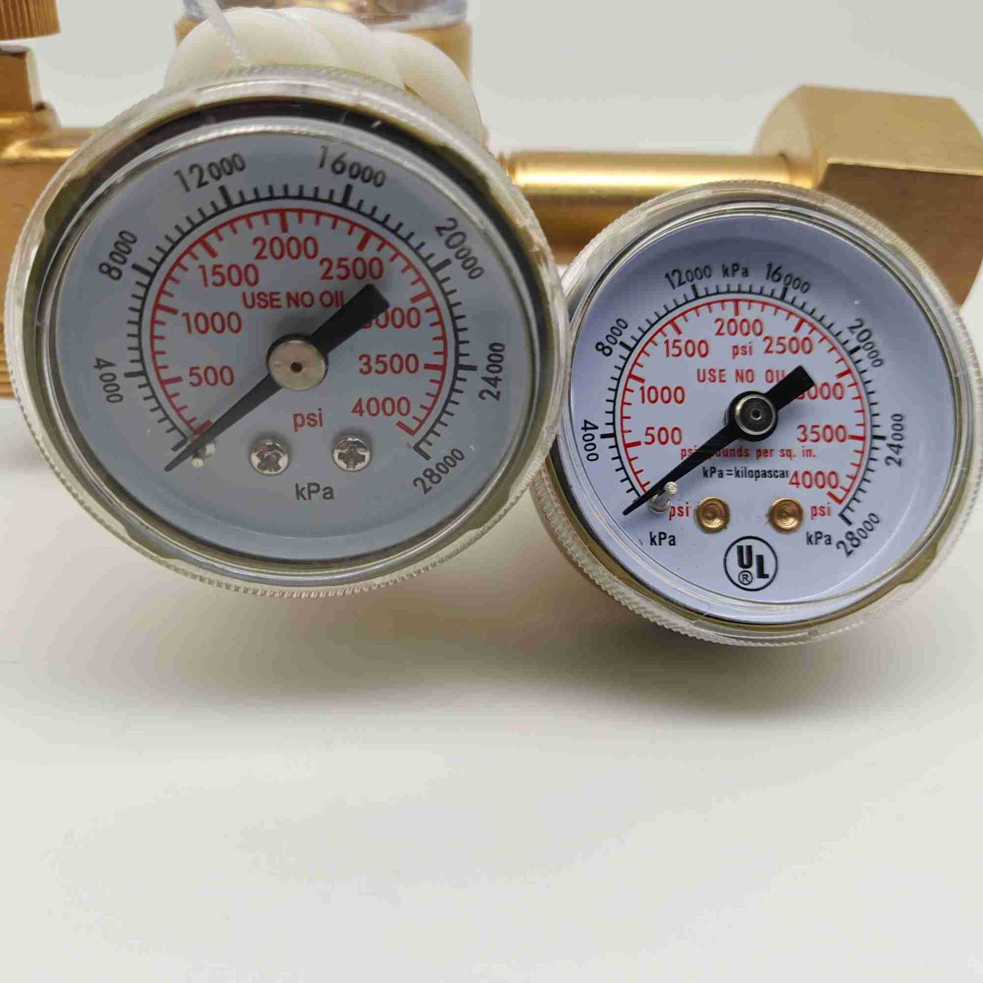 Argon Gas Pressure Regulator with Dual Flow Meters for Welding, Single Stage Pressure Reducer, 0-25 MPa
