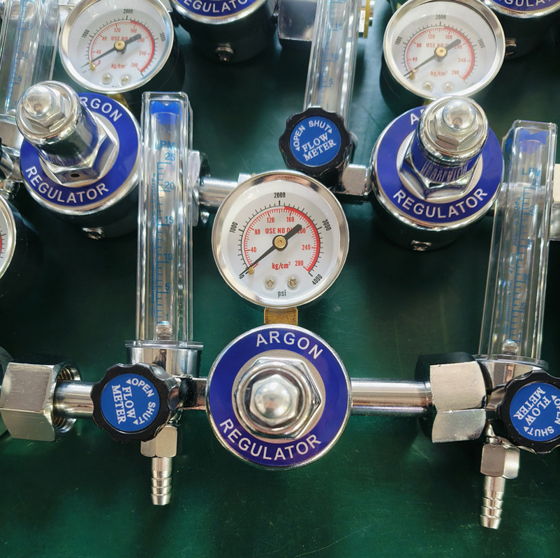Argon Gas Pressure Regulator with Dual Flow Meters for Welding, Single Stage Pressure Reducer, 0-25 MPa