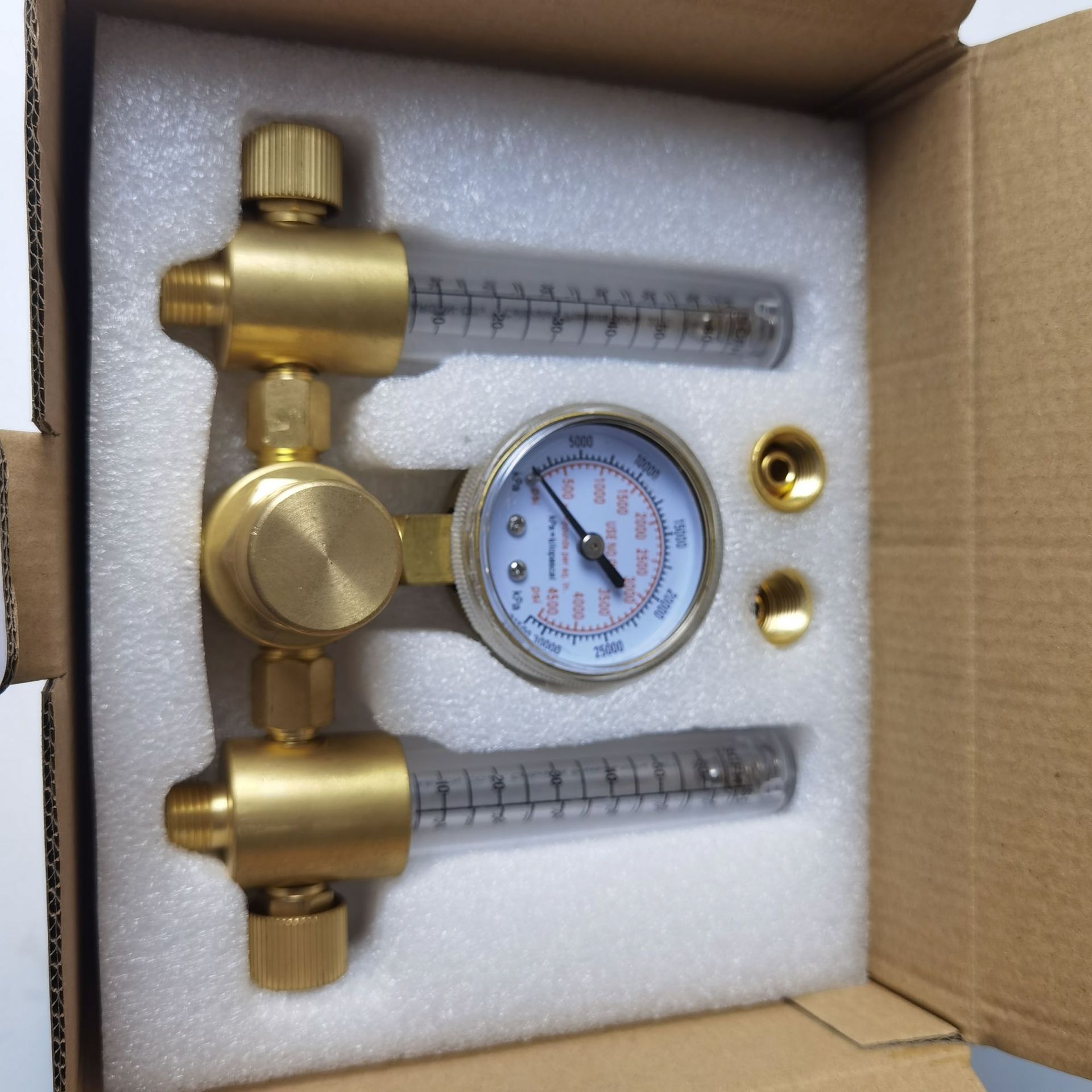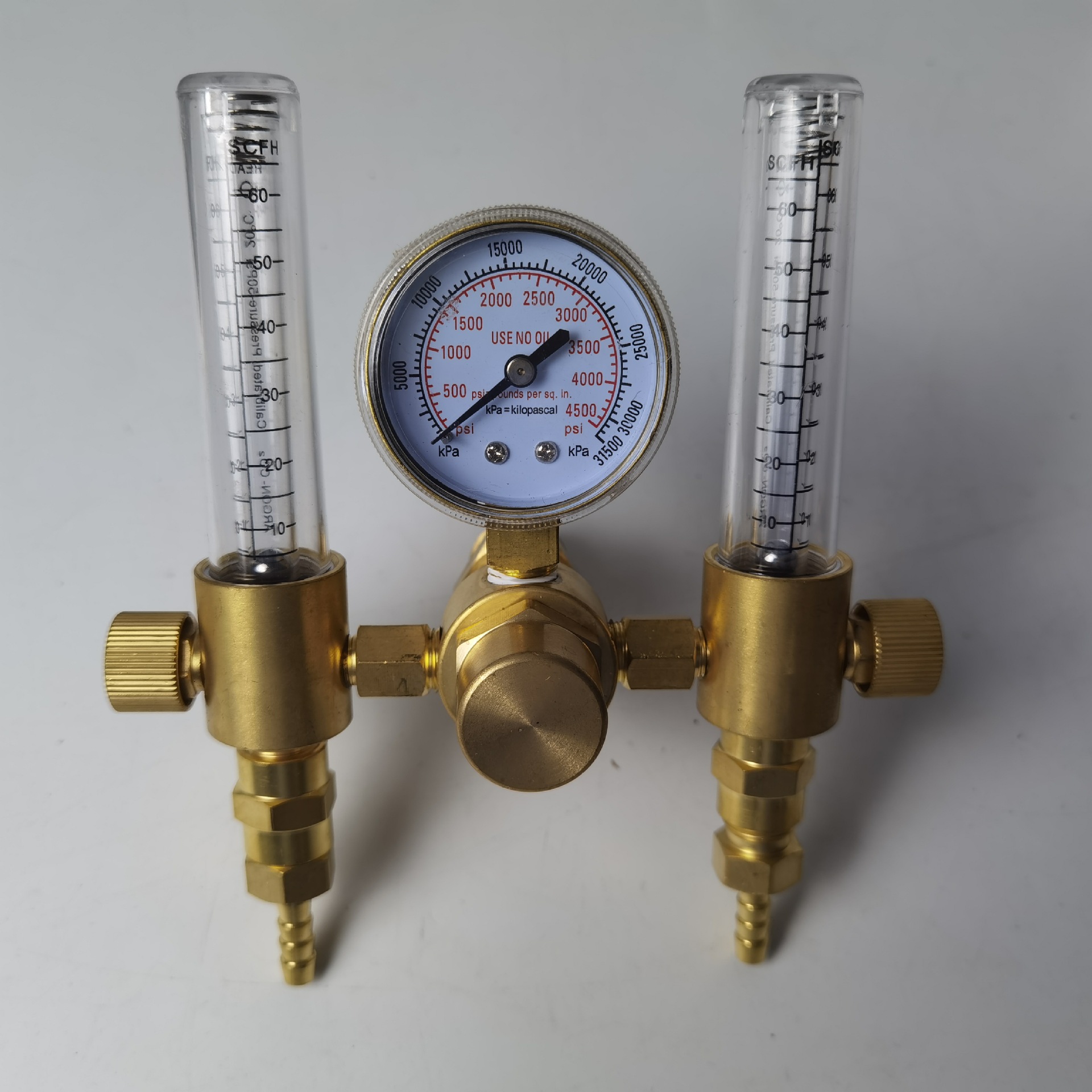 Argon Gas Pressure Regulator with Dual Flow Meters for Welding, Single Stage Pressure Reducer, 0-25 MPa
