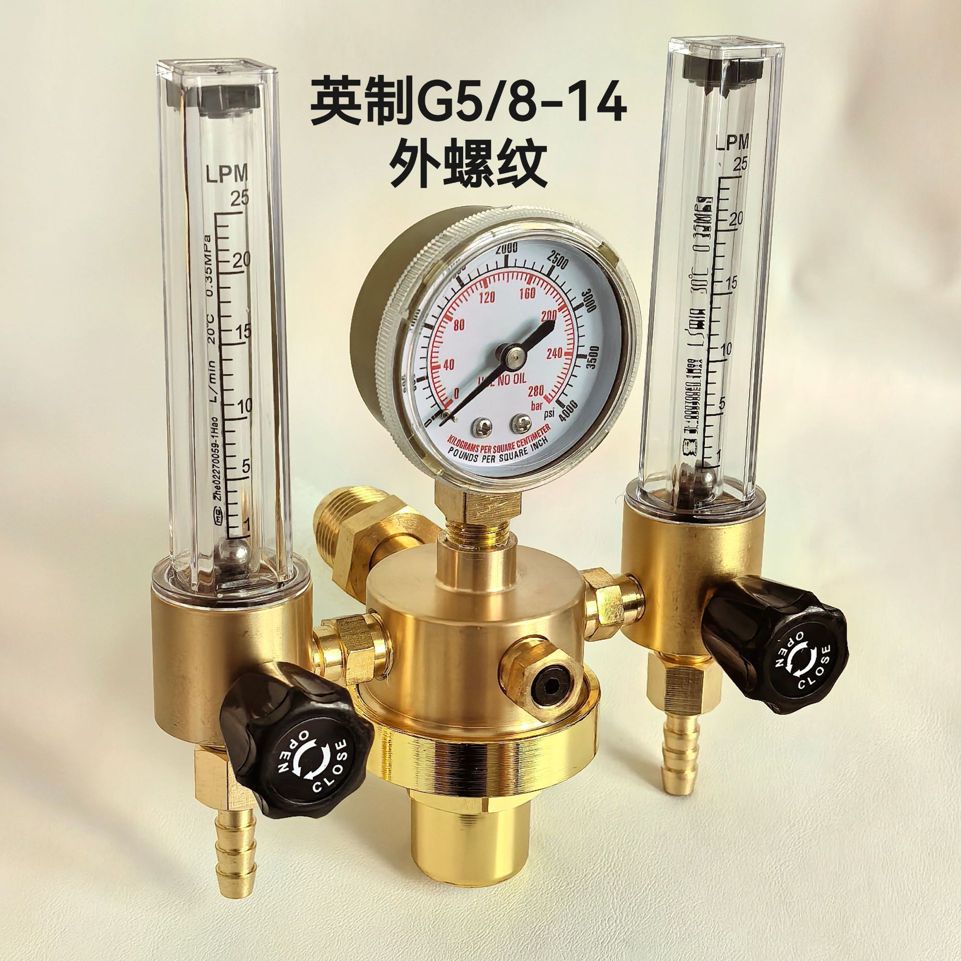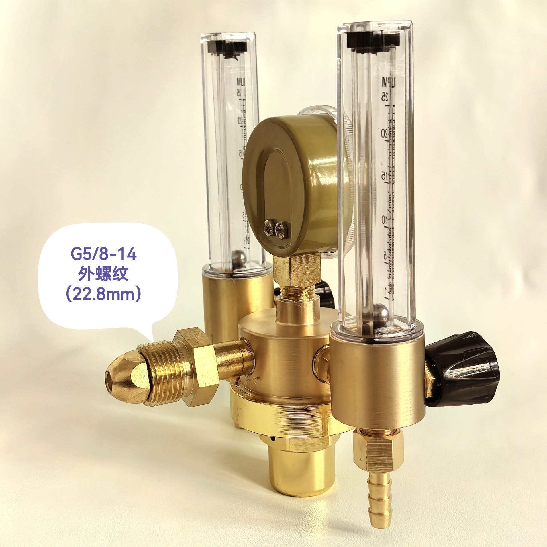 Argon Gas Pressure Regulator with Dual Tube Flowmeter (0-25 MPa, 0-0.3 MPa, 0-25 LPM) for Welding and Brazing