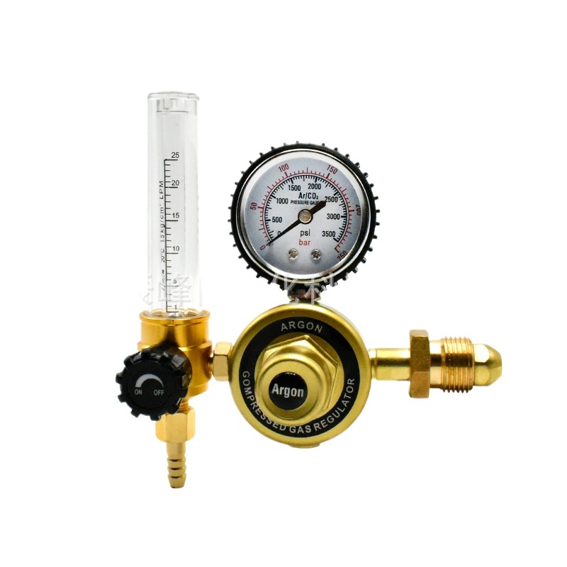 Argon Gas Pressure Regulator with Dual Flow Meters for Welding, Single Stage Pressure Reducer, 0-25 MPa