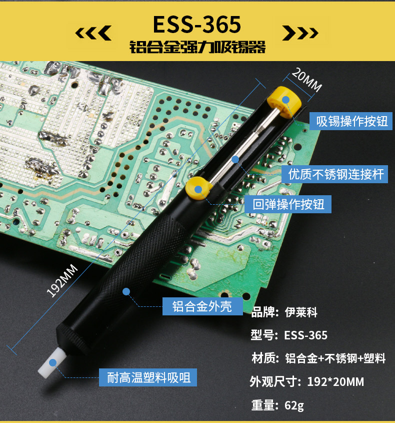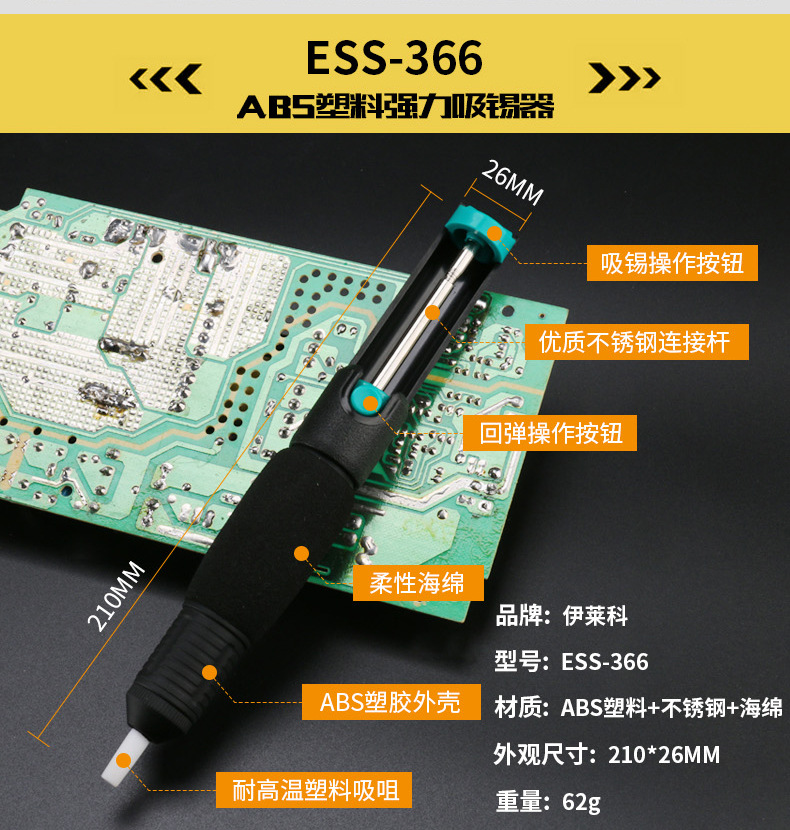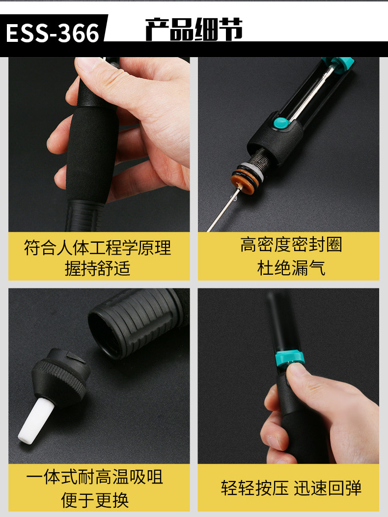 - Key Specs & Performance: Designed with a double-ring mechanism for boosted suction power, ensuring swift and efficient solder removal with strong rebound action.