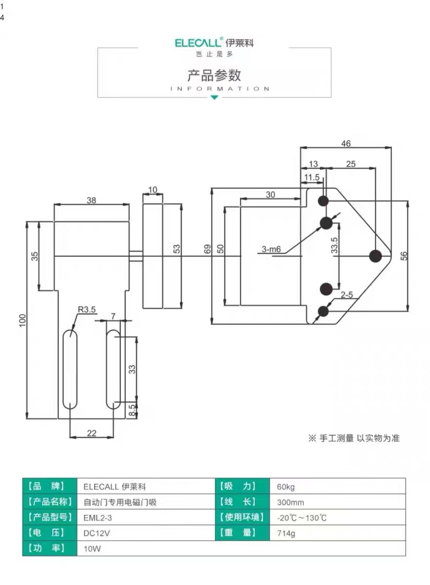 Automatic Door Electromagnetic Suction Cup Lock (DC12V, 60kg Suction) for Automatic Doors Replaces EML2-3/EML2-4