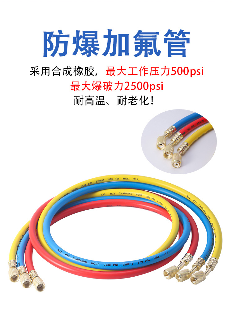 R12 R22 R502 Refrigerant Charging Hoses with Ball Valve Adapters – 2500PSI Burst Pressure, 500PSI Max W.P. for AC Manifold Gauge Set