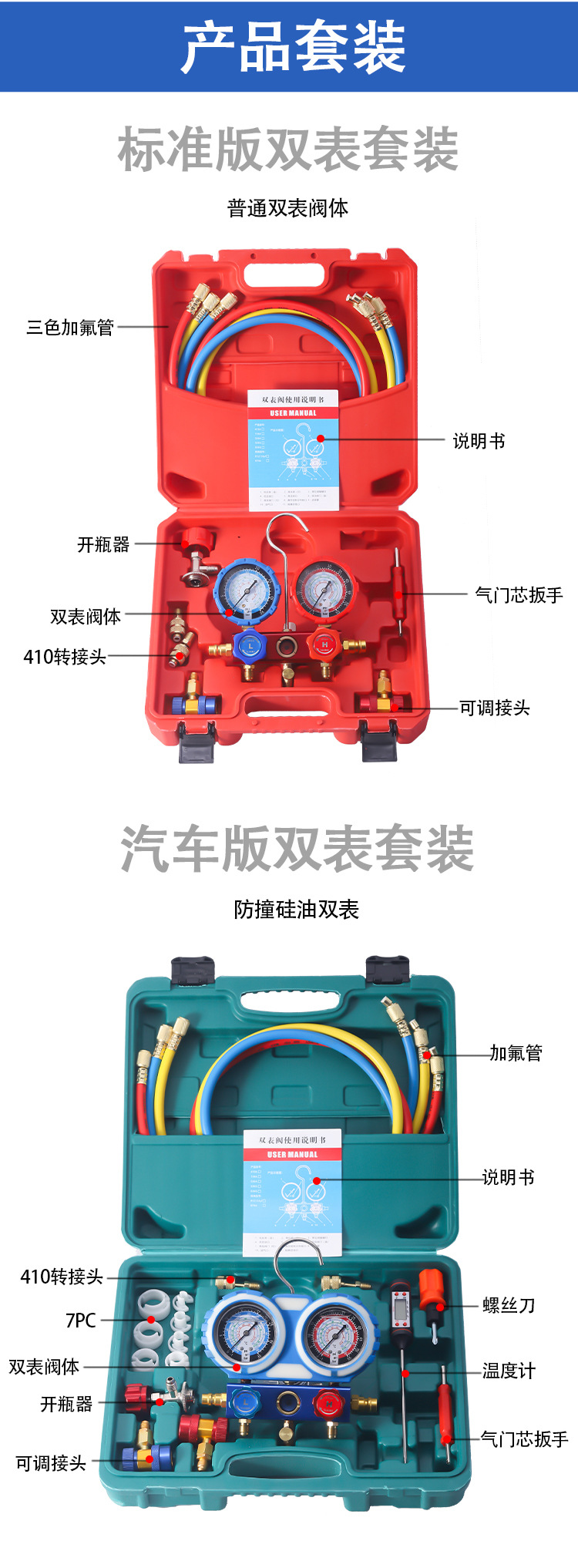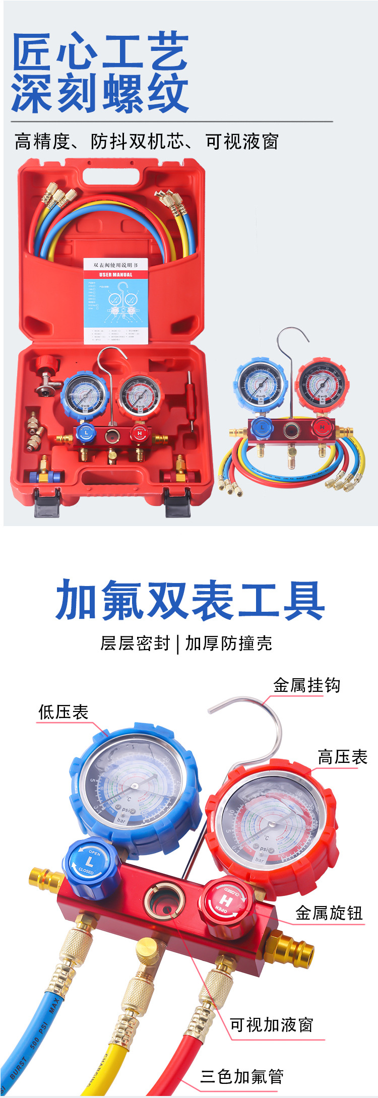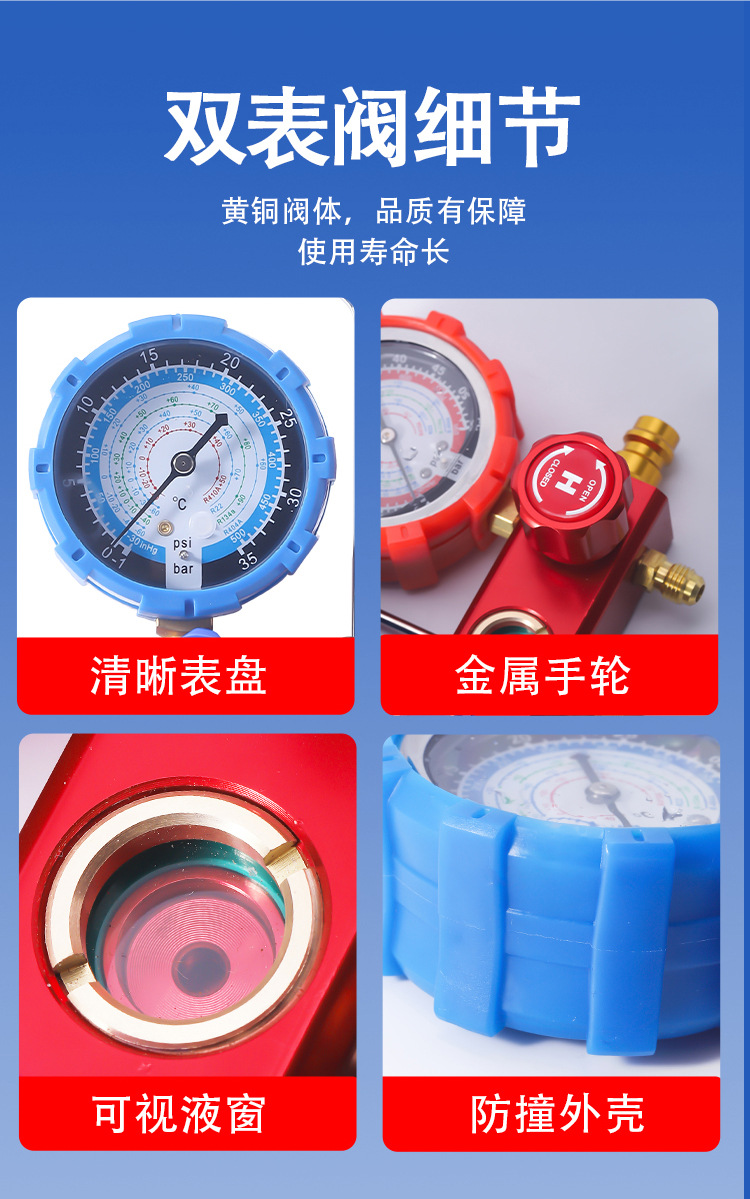 - Precise Measurement: Equipped with high-precision gauges, the set offers measurement ranges of -1~35bar and -1~55bar, providing accurate pressure readings crucial for efficient AC recharging and testing.