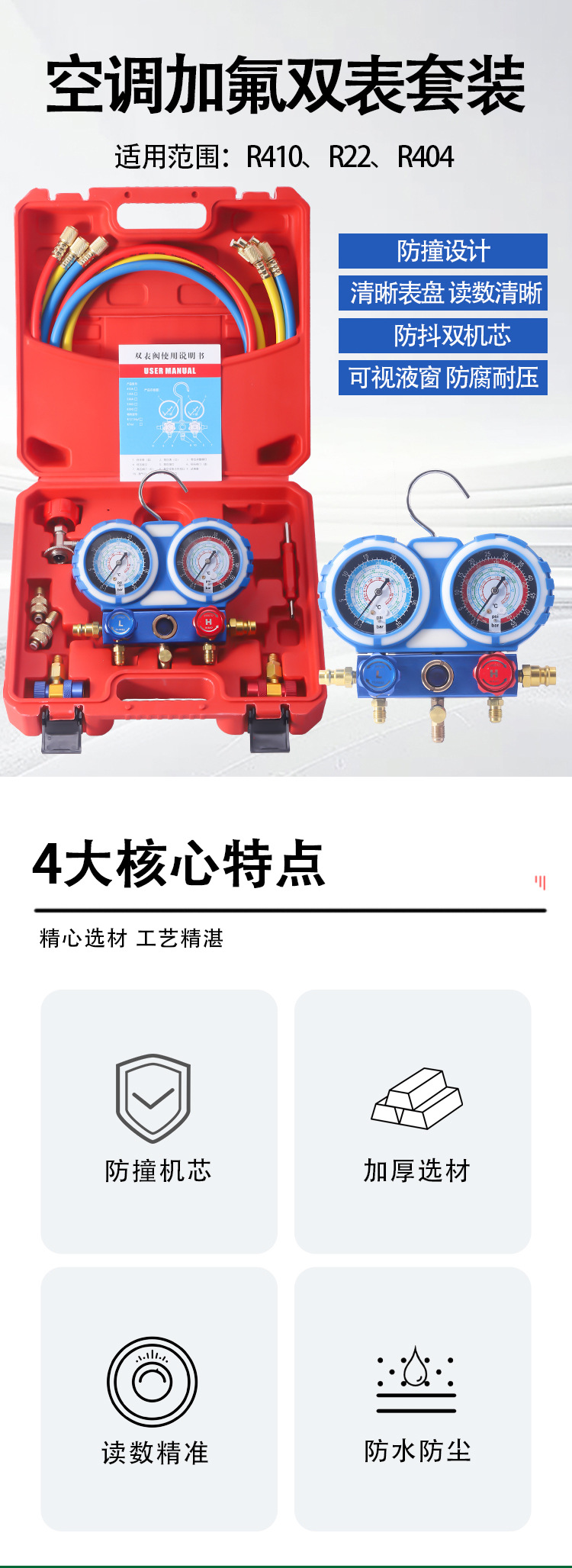 - Wide Compatibility: Designed for professional use, this manifold gauge set is compatible with R22, 134a, R404a, and R407C refrigerants, making it ideal for automotive and home air conditioning systems.