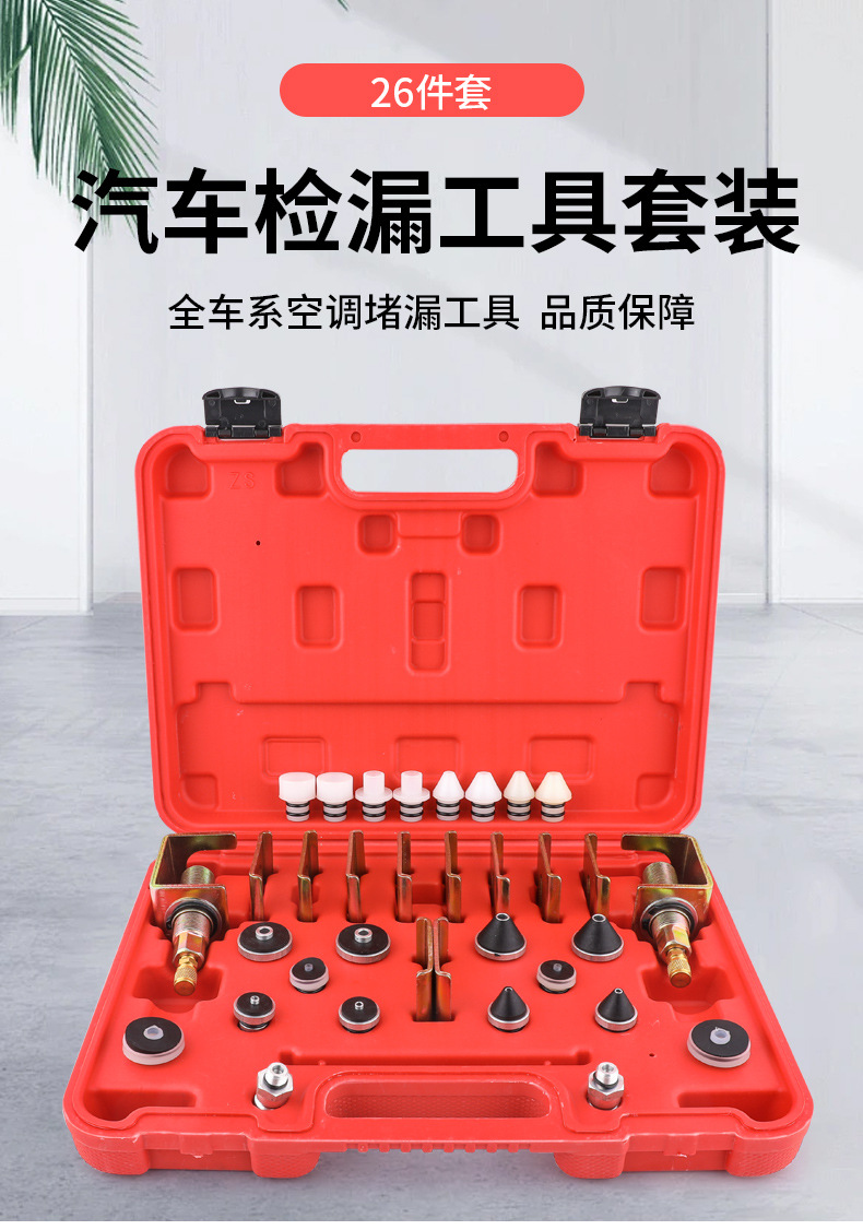 Automotive AC Leak Detection Kit (26-Piece) with All-Aluminum Base and Anti-Leak Rubber for full car series