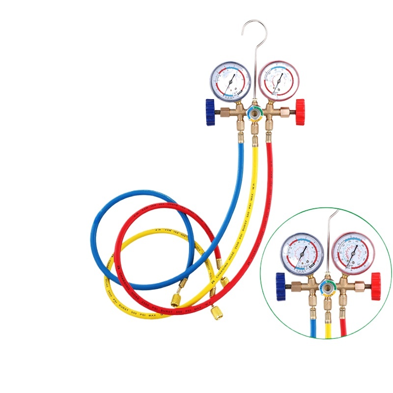 Automotive AC Manifold Gauge Set (Dual Gauges, Pressure/Explosion Proof, Full Copper Body) for Car HVAC Refrigerant Charging