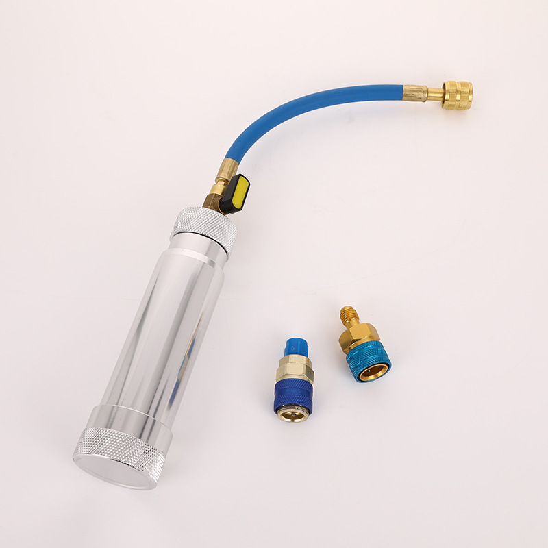 - Key Specs & Performance: Features a high-capacity design for efficient refrigerant oil or dye injection, equipped with a low-pressure quick coupler for easy and secure connection without leaks.