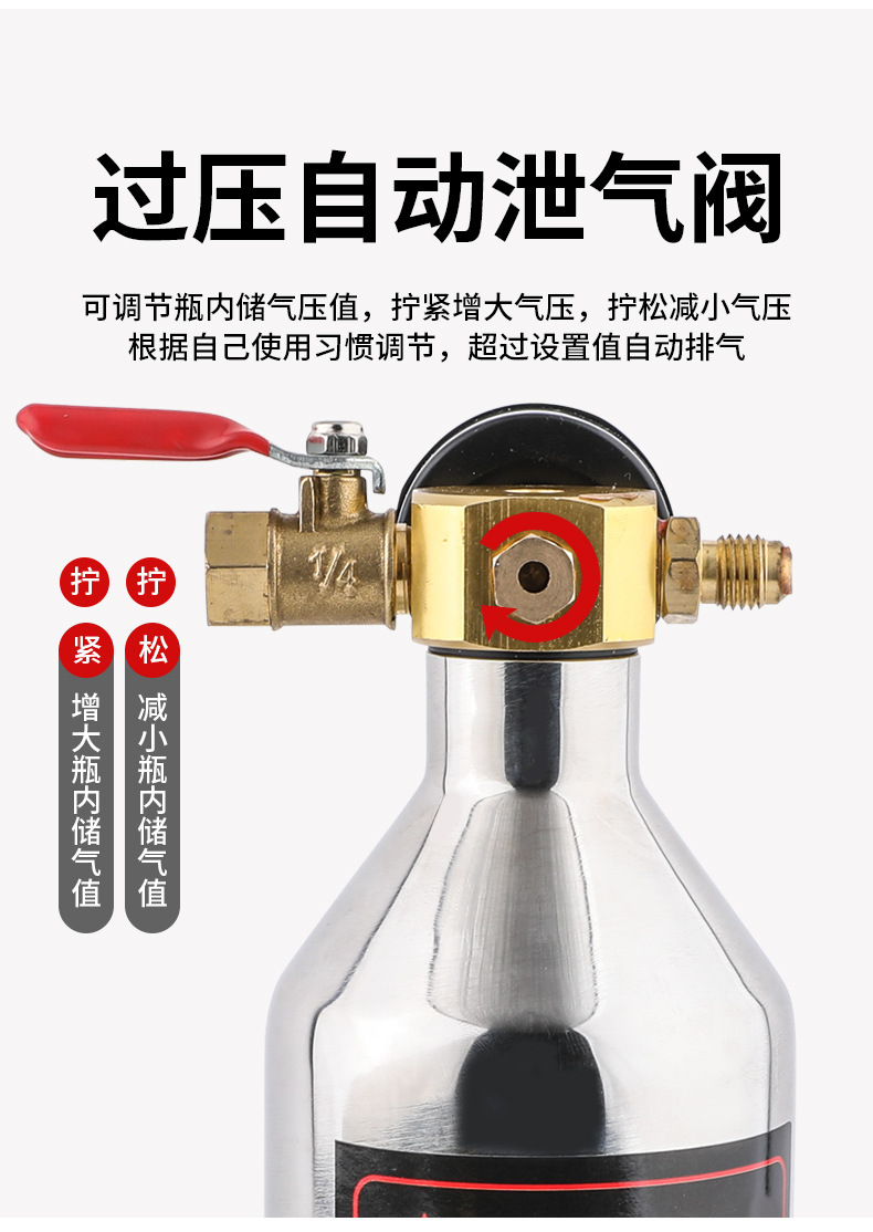 - Key Specs & Performance: Features a large 1000ml (approx. 1 liter) capacity for efficient flushing, a precise pressure gauge for real-time monitoring, and an automatic over-pressure relief valve for safety.