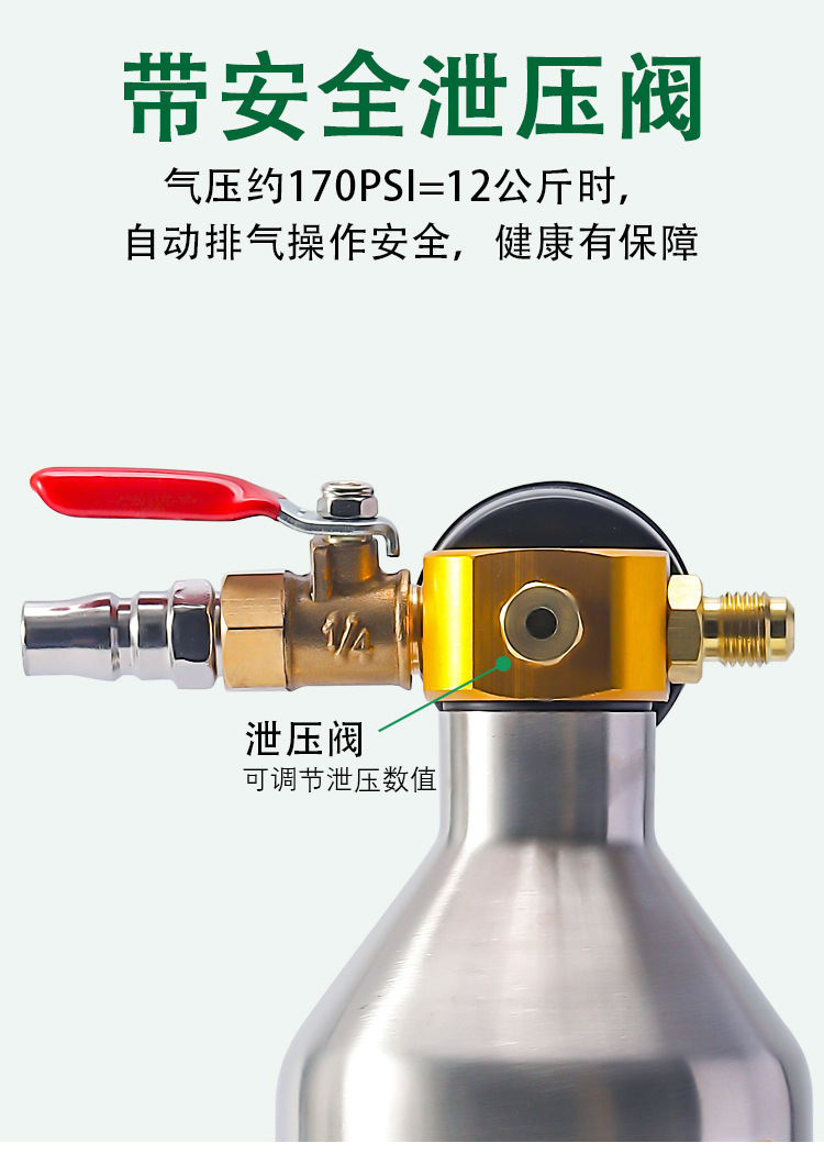Automotive AC System Flush Set (Stainless Steel with Pressure Release Valve) for Car Air Conditioning System Cleaning and Maintenance