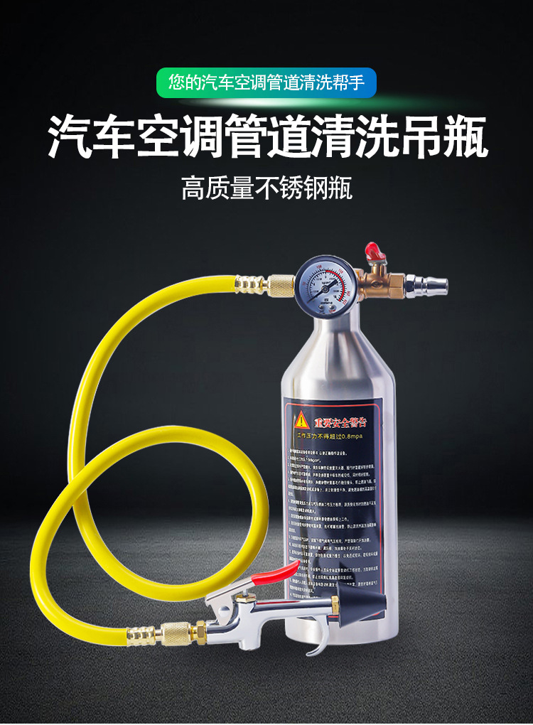 - What You Get: Includes a stainless steel flush bottle with pressure relief, a flush gun, connecting hose, and necessary adapters, providing a complete solution for AC system flushing.