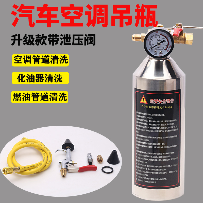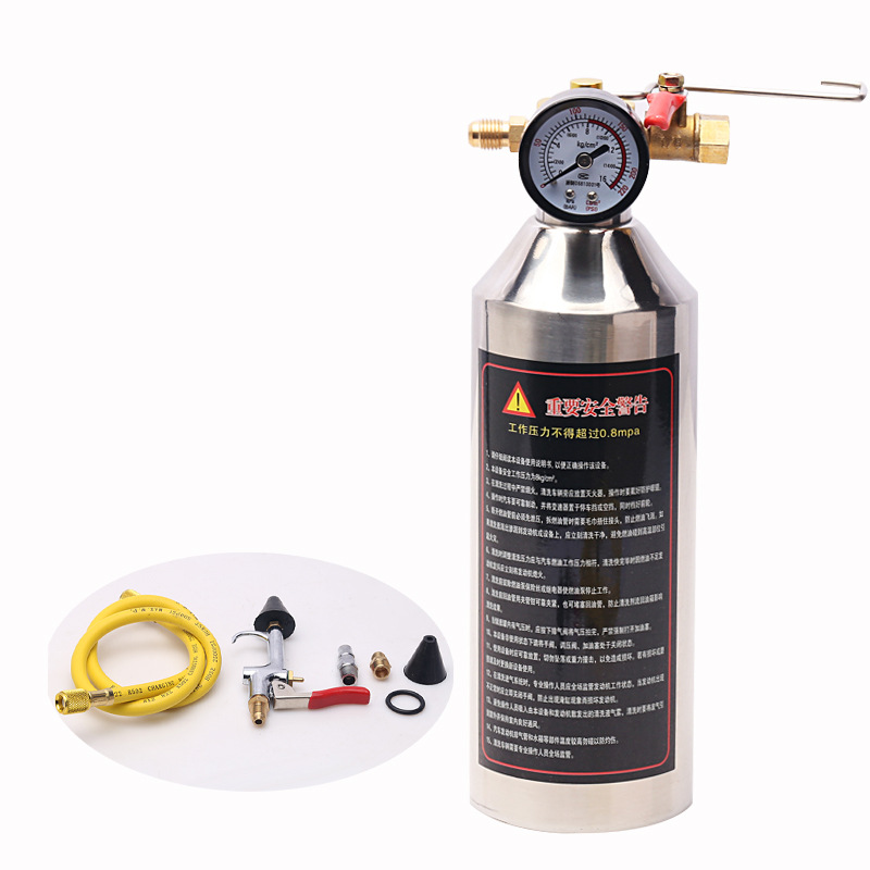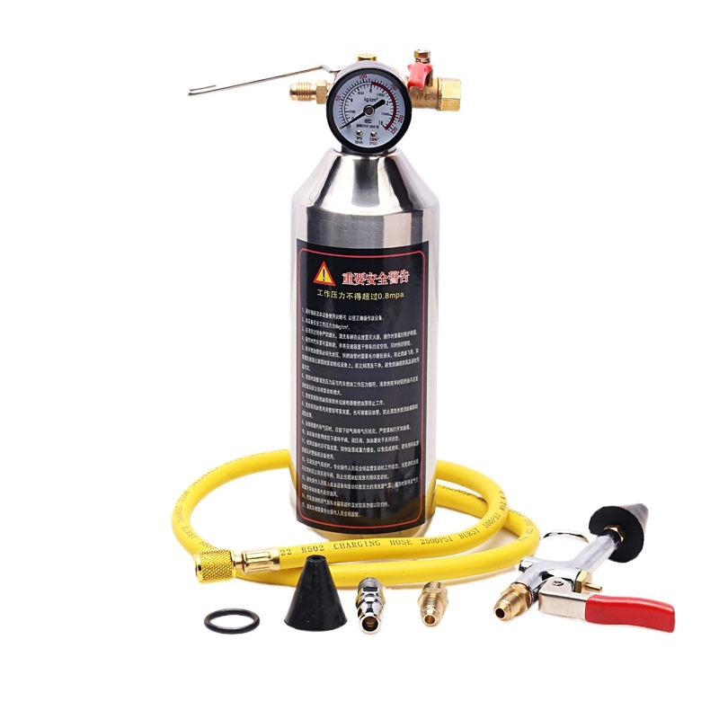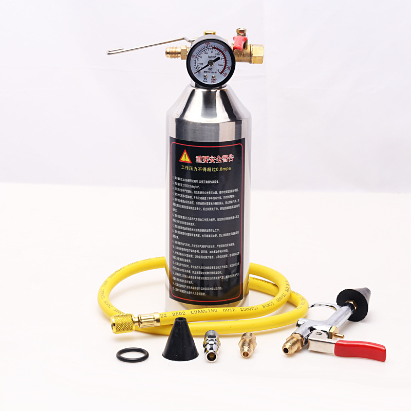 Automotive AC System Flushing Cleaning Bottle Kit with Pressure Relief Valve for Car Air Conditioning Pipe Cleaning