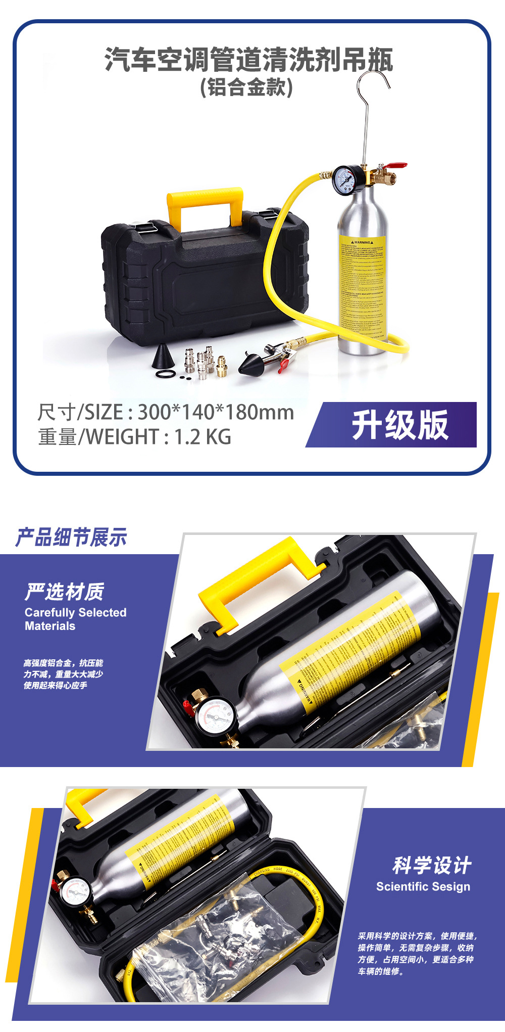 - What You Get: Comes with a complete automotive AC pipeline cleaning agent hanging bottle kit in a durable storage case, including various connectors and adapters, ready for immediate use and ensuring all necessary components are available.