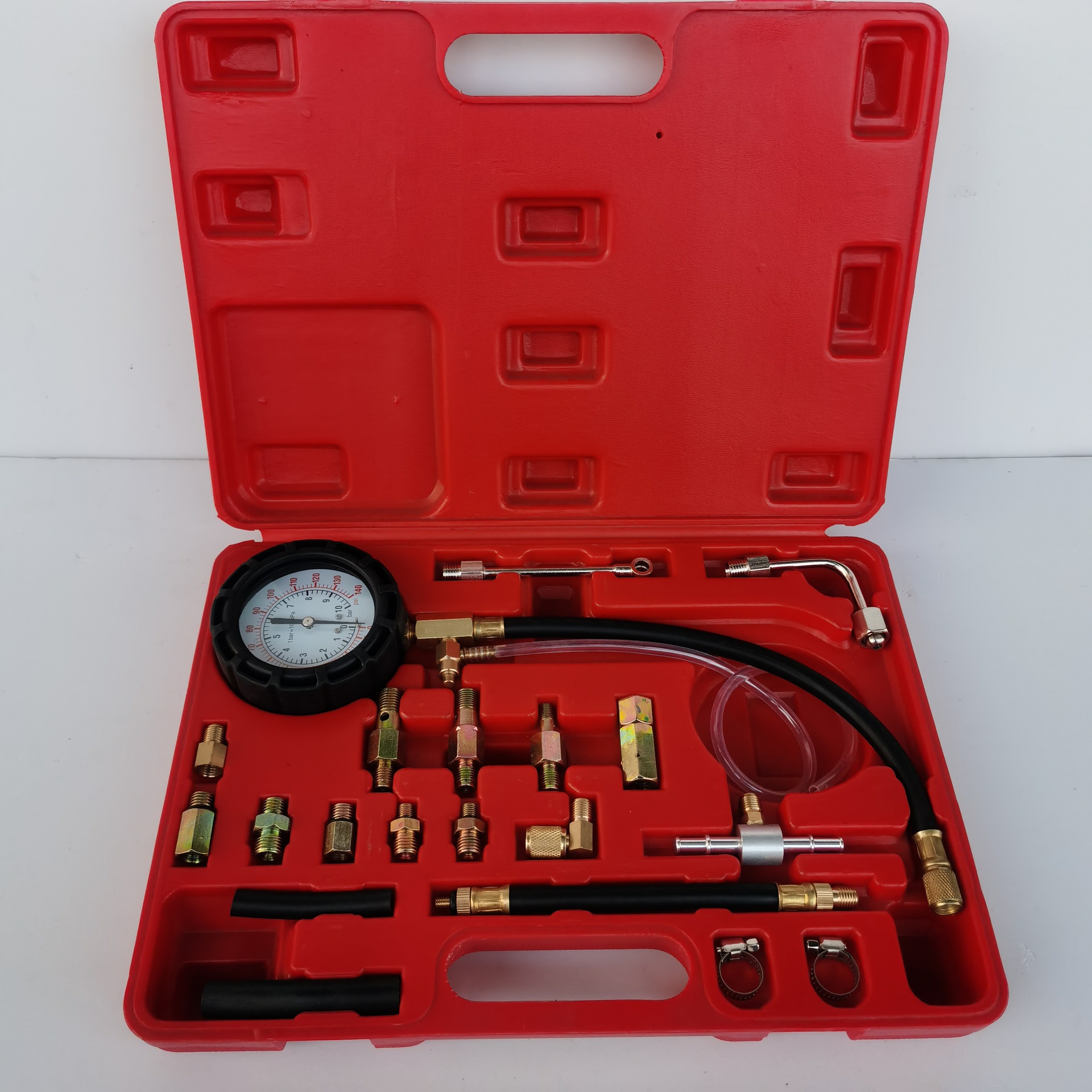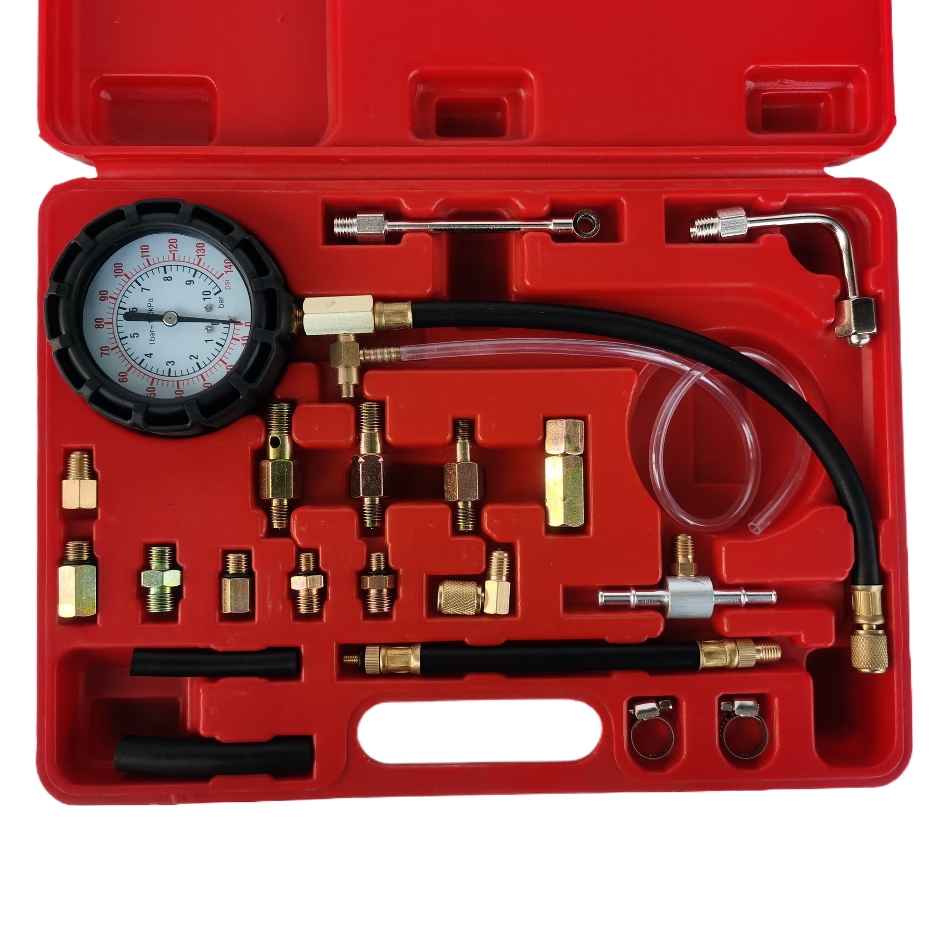 - What You Get: Includes a comprehensive fuel pressure test kit, all necessary hoses and adapters, neatly organized in a durable red storage case, providing a complete solution for auto repair and maintenance.