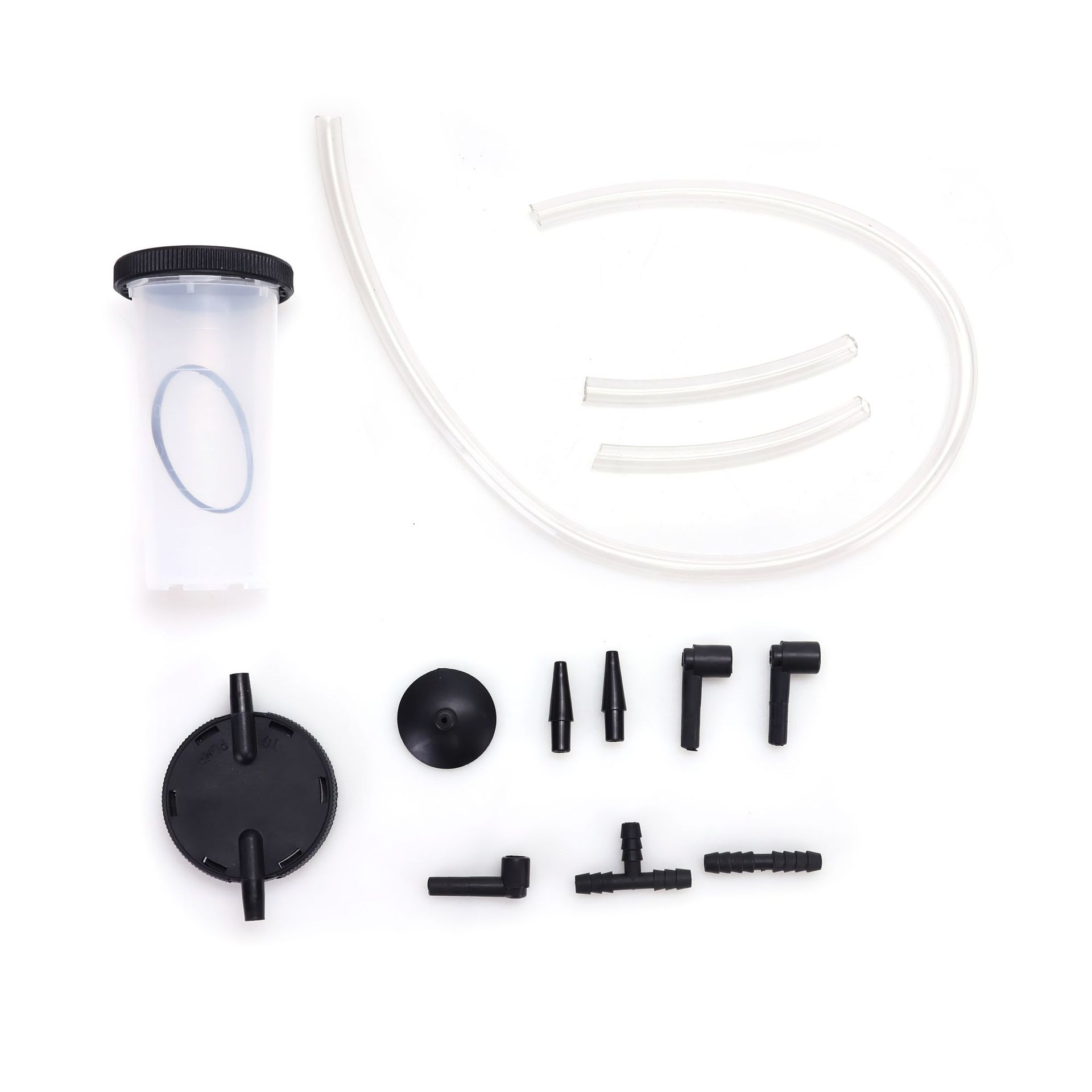 - What You Get: Includes a manual vacuum pump with gauge, fluid reservoir, transfer caps, various hoses, and connectors, all housed in a sturdy carrying case for convenient storage and transport, backed by reliable performance.