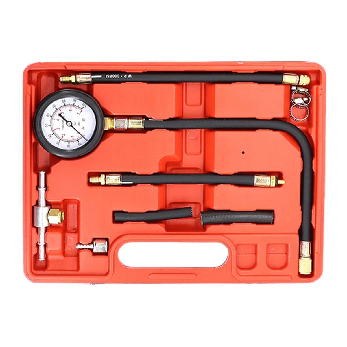 - What You Get: Includes a comprehensive 9-piece fuel pressure tester set with gauge, multiple adapters, and hoses, all housed in a sturdy case for organized storage and portability, ensuring you have the right tools for effective fuel system diagnostics.