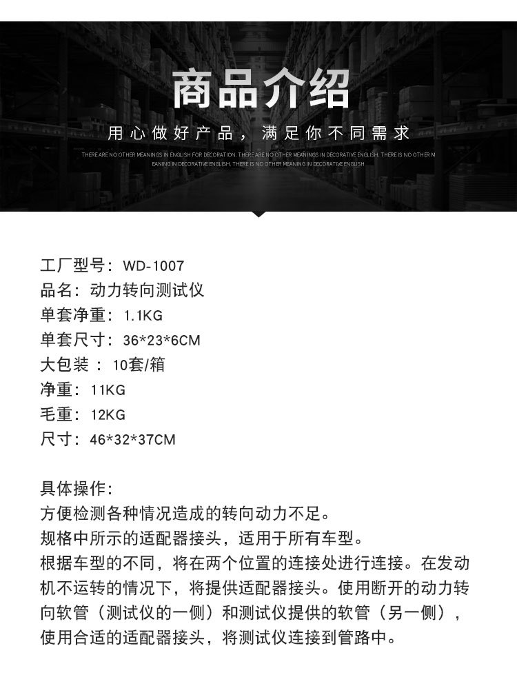 Automotive Power Steering Pressure Test Kit (0-7bar) for Hydraulic Power Steering Systems Replaces WD-1007