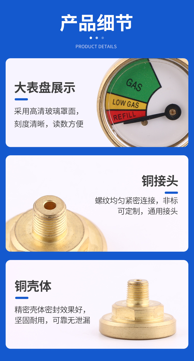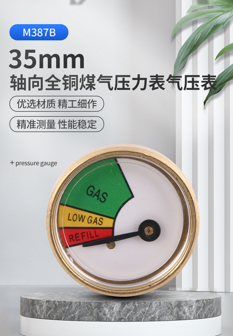 Auxiliary Gauge 35mm Axial Full Copper Gas Pressure Gauge M387B