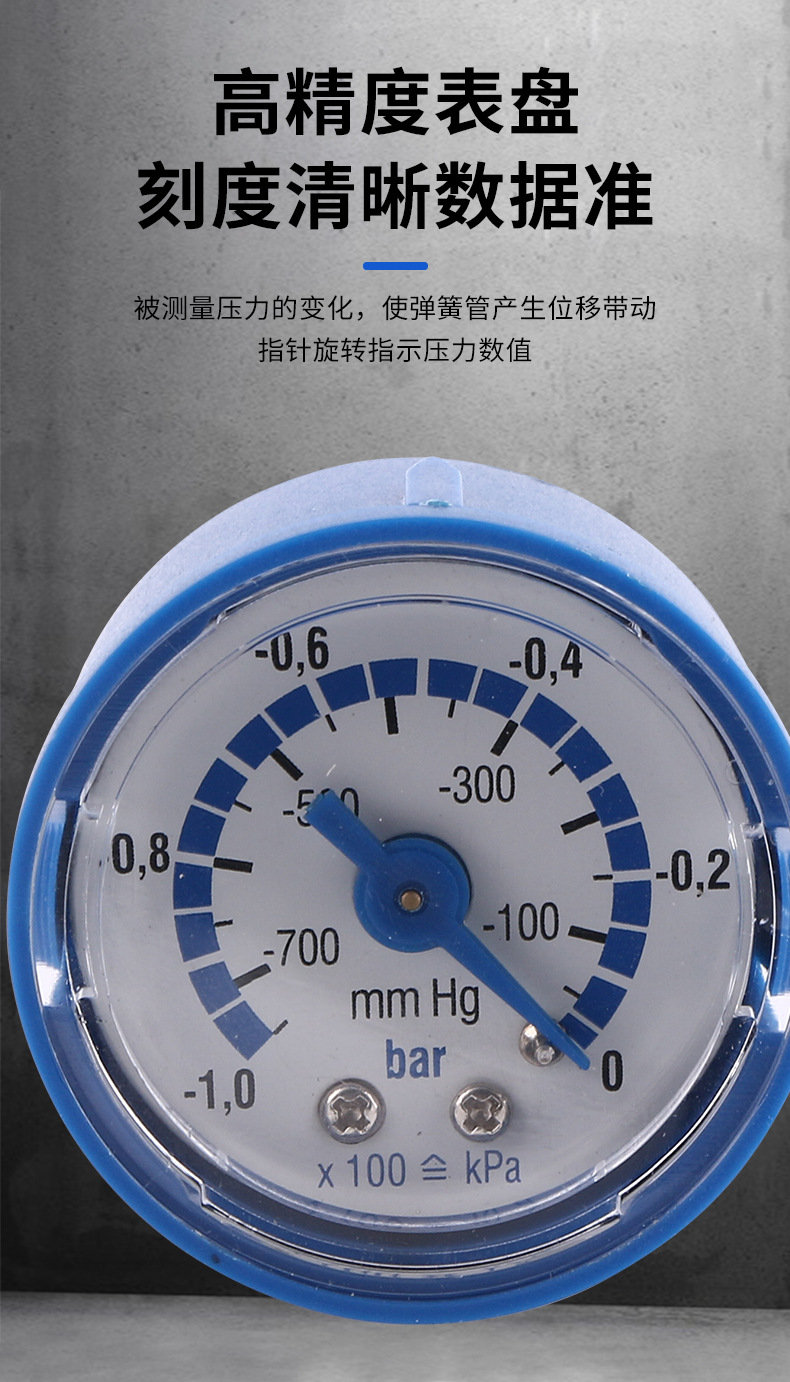 - Key Specs & Performance: This 40mm axial pressure gauge displays readings in mmHg, bar, and kPa (x100), with a measurement range of -700mmHg to 0 and -1bar to 0, offering precise vacuum measurement.