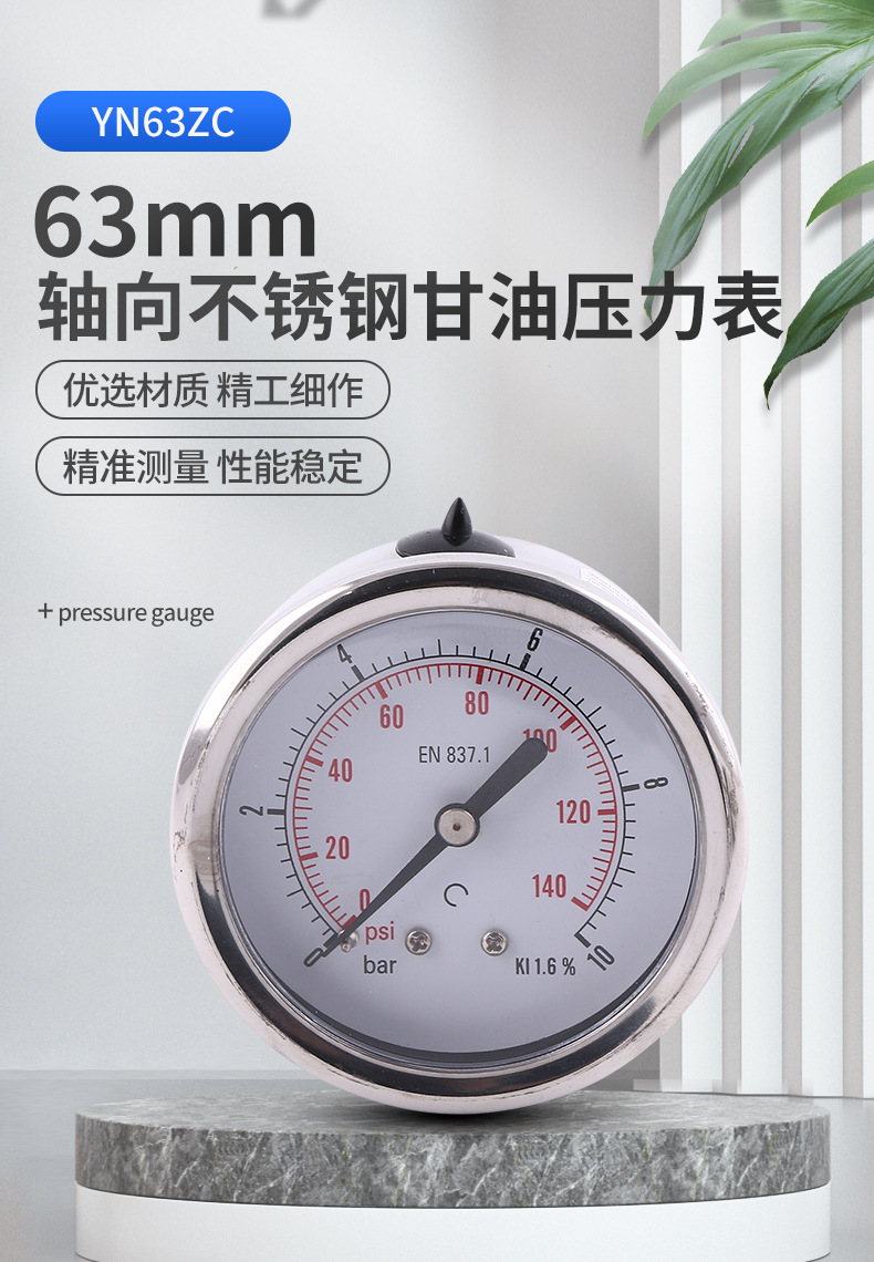 - What You Get: One 63mm Axial Glycerin-Filled Pressure Gauge (Model YN63ZC), providing reliable pressure measurement for your equipment. Covered by our satisfaction guarantee.