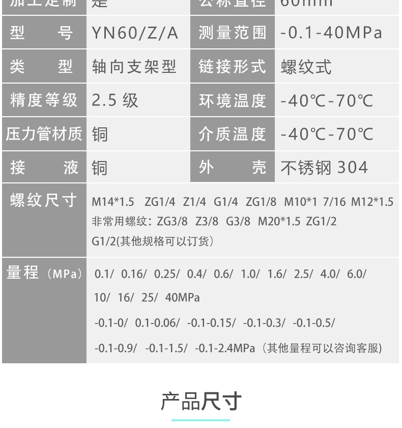 - Wide Compatibility: Compatible with various hydraulic systems, this YN60/Z/J axial anti-vibration pressure gauge is a suitable replacement for damaged or old pressure meters.