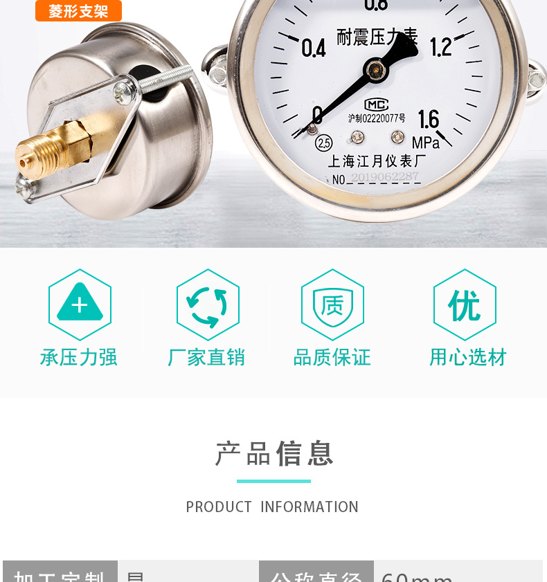 - Key Specs & Performance: Features a precise measurement range of 0-1.6 MPa and an accuracy class of 2.5, delivering reliable and accurate pressure readings for critical operations.