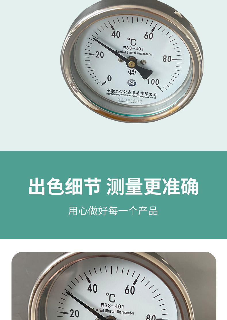 Axial Bimetal Thermometer WSS-401 (0-100°C, 1.5 Accuracy) for Industrial HVAC Systems
