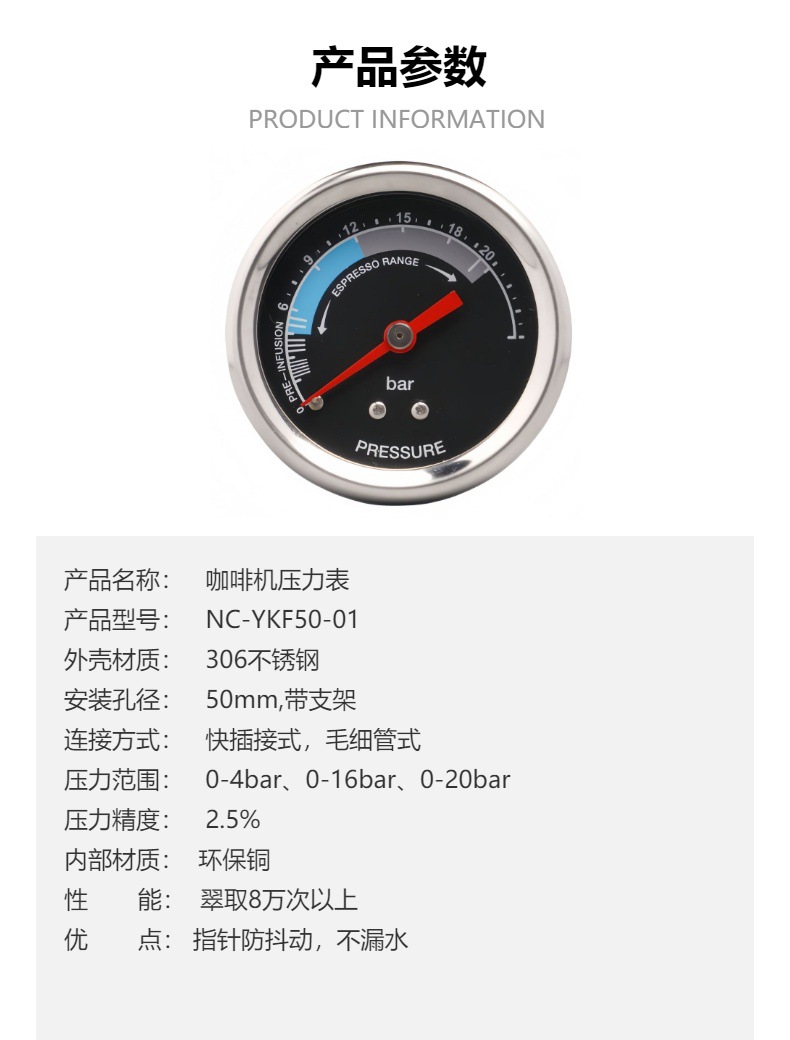 - What You Get: One comprehensive coffee machine pressure gauge, featuring specifications for stable performance and a clear dial, ensuring reliable and easy-to-read pressure indications.