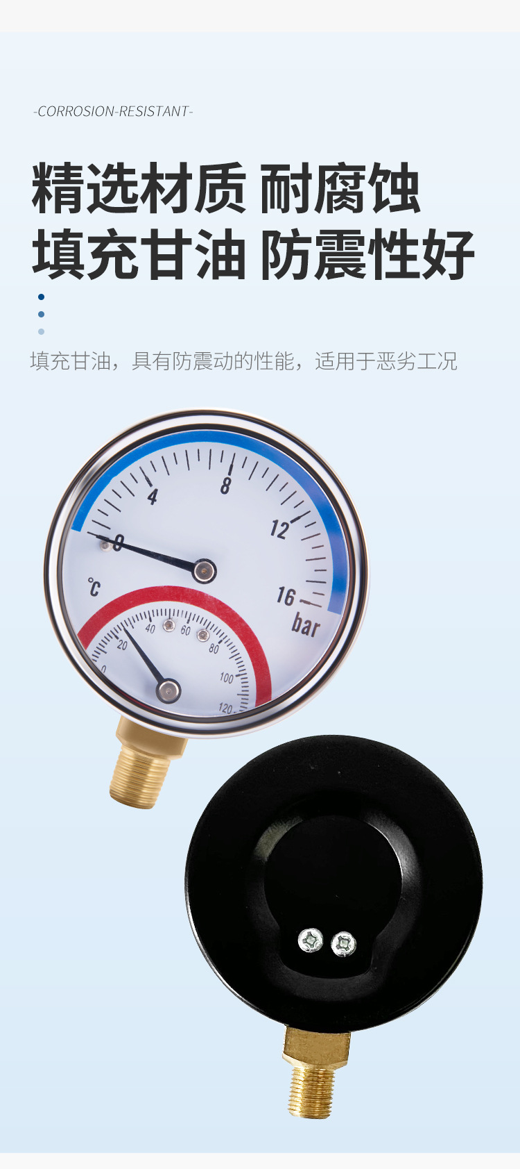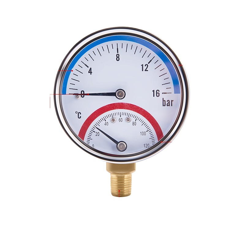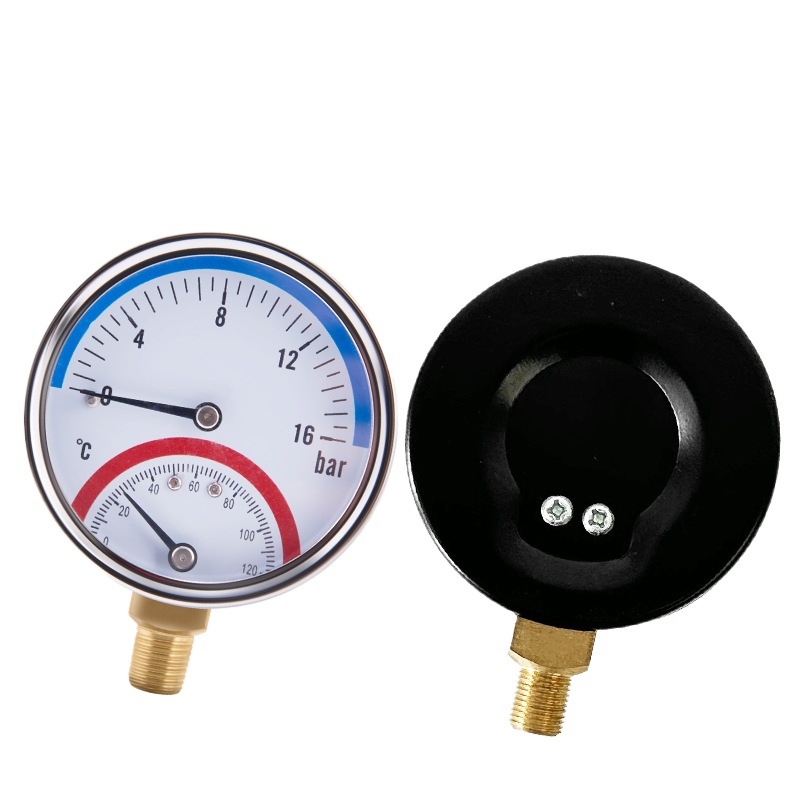 Axial Dial Thermometer Pressure Gauge (0-16 bar, 0-120°C) for Heating Pipe Underfloor Heating Manifold Testing