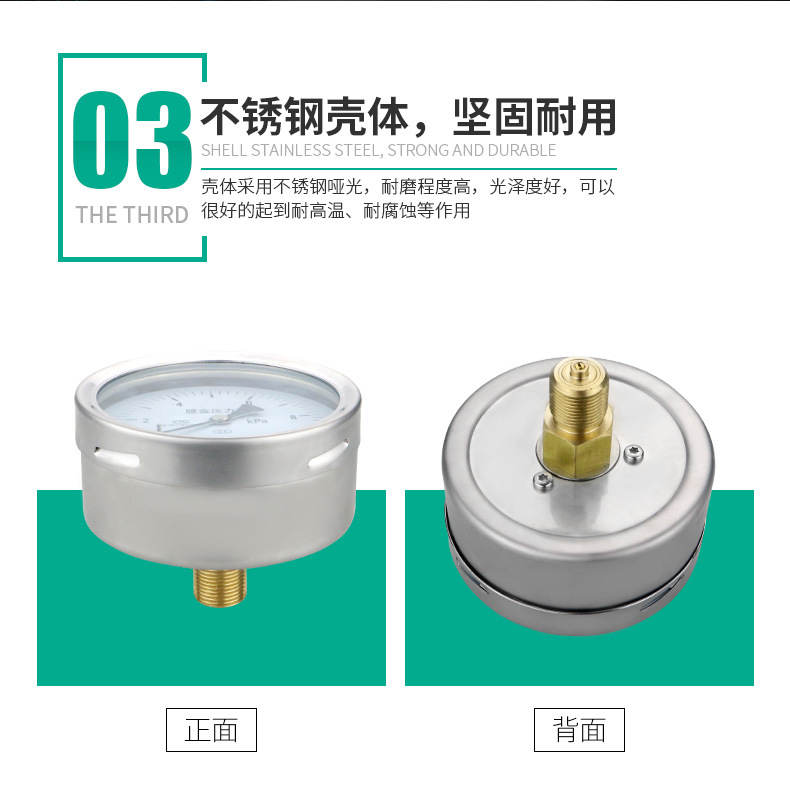 - Wide Compatibility: KAIXUAN YE100Z diaphragm pressure gauge for measuring micro pressure in HVAC and gas systems, compatible with various threaded connections.