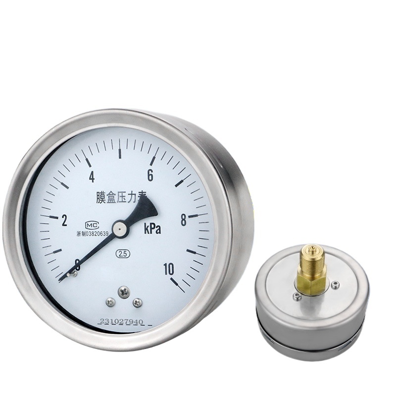 Axial Diaphragm Pressure Gauge YE100Z (0-10 KPa) Stainless Steel Micro Pressure Sensor for HVAC Gas Systems, KAIXUAN HVAC Parts