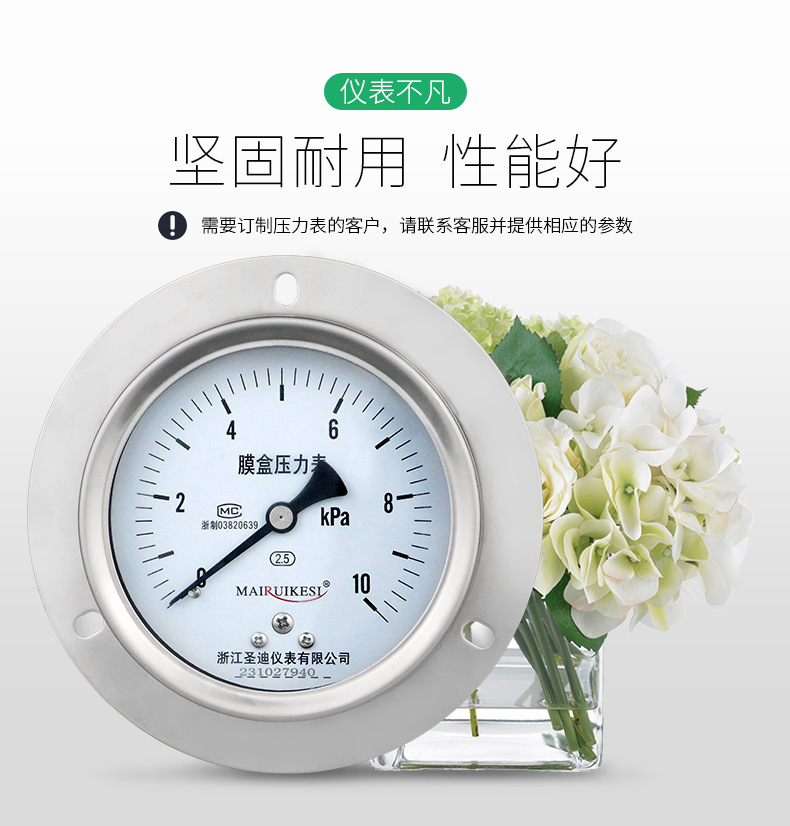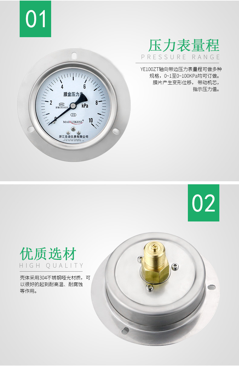 - What You Get: One YE100ZT Axial Diaphragm Pressure Gauge with specific measurement ranges (0-2.5KPa to 0-100KPa, and -2.5-0KPa to -100-0KPa options), plus customization availability for other ranges.