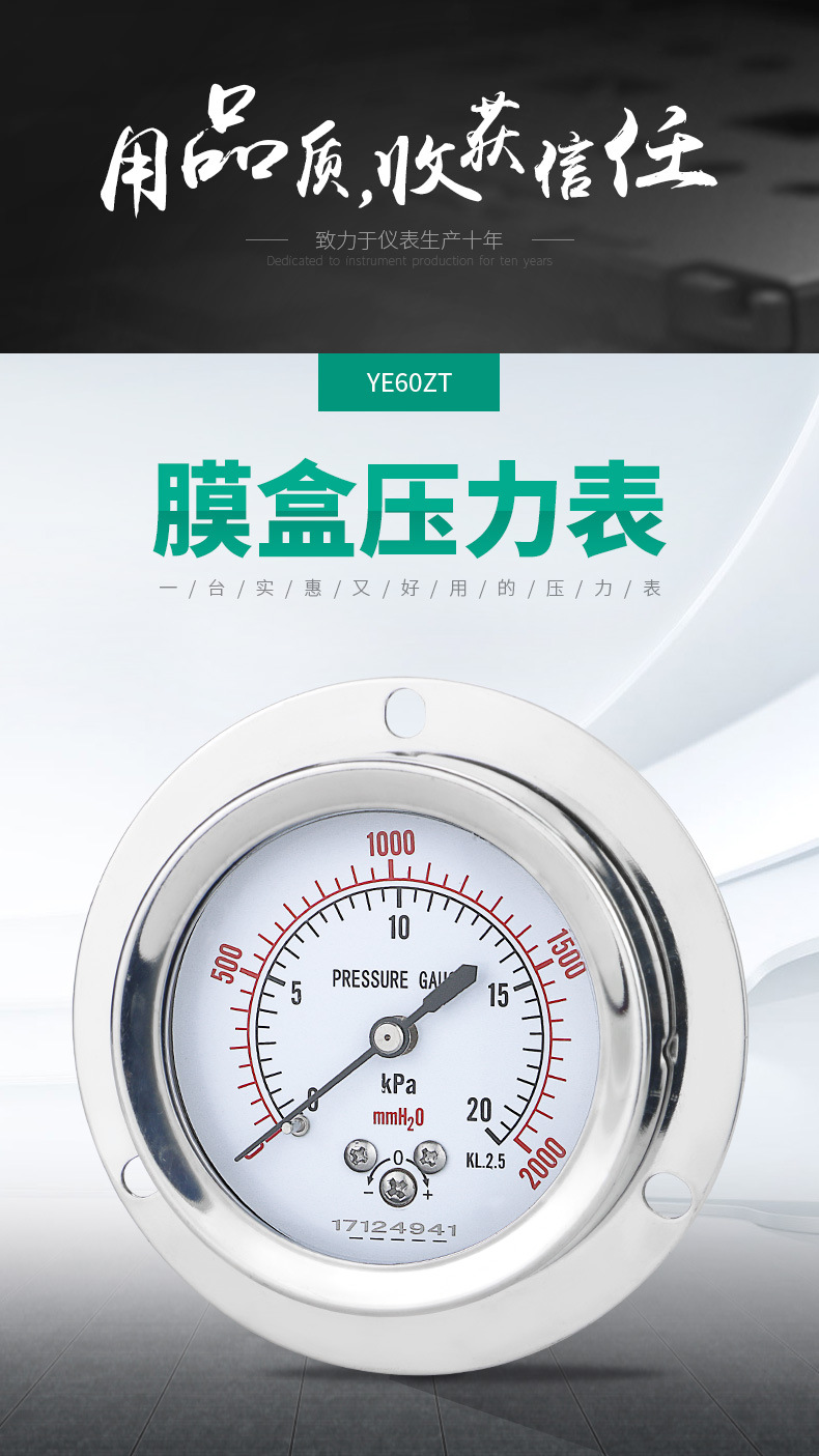 - Wide Compatibility: YE60ZT model diaphragm pressure gauge is suitable for various applications requiring precise micro pressure measurements.