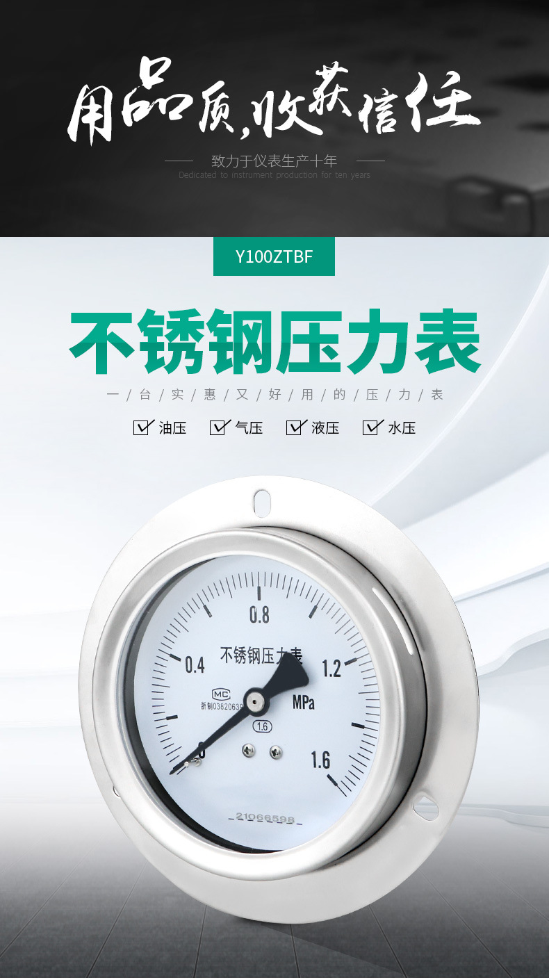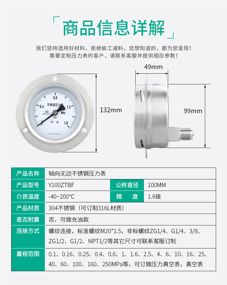 - What You Get: Includes one Y100ZTBF Stainless Steel Pressure Gauge for versatility across different pressure media, backed by German-engineered quality.