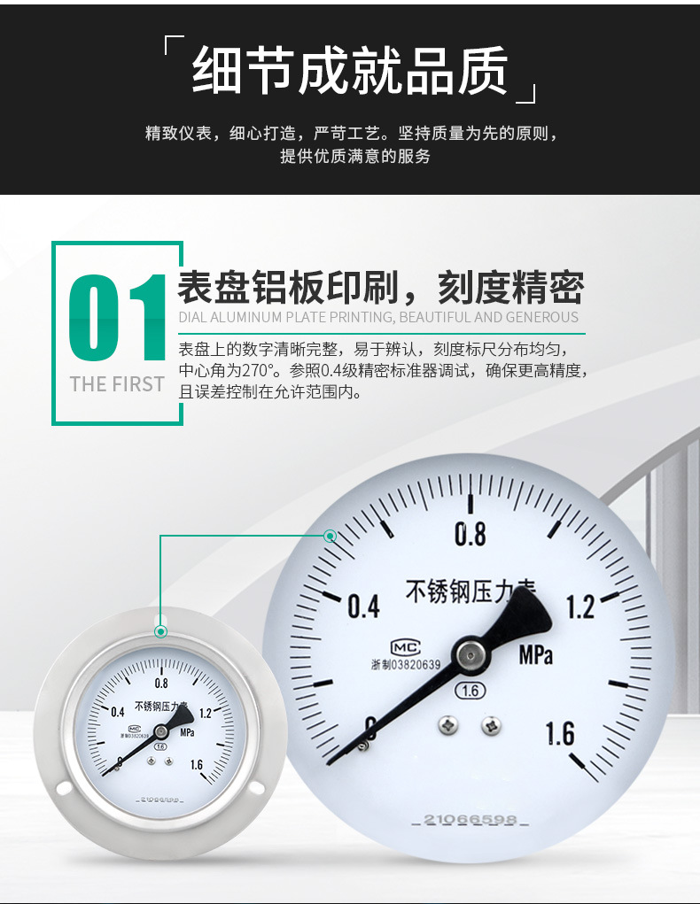 - Key Specs & Performance: Features a -0.1~1.6 MPa measurement range and 1.6 precision level, providing accurate and reliable readings for diverse industrial applications.