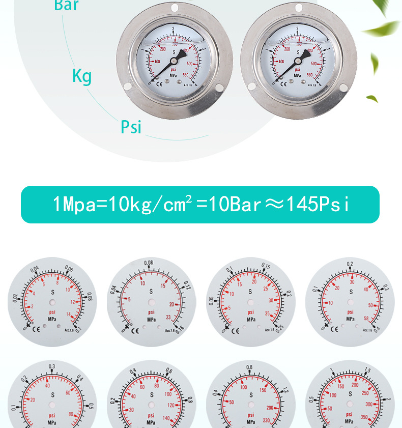 - Key Specs & Performance: Features a 0-1.6 MPa measurement range with 2.5 accuracy, providing reliable readings for critical applications. Clearly visible dial with MPa units.