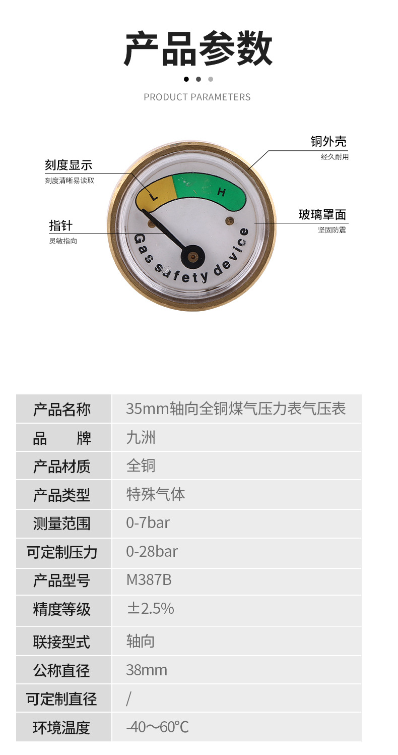 - What You Get: One high-quality 35mm all-copper axial gas pressure gauge (Model M387B) designed for gas safety devices, ensuring accurate monitoring and contributing to enhanced system safety.
