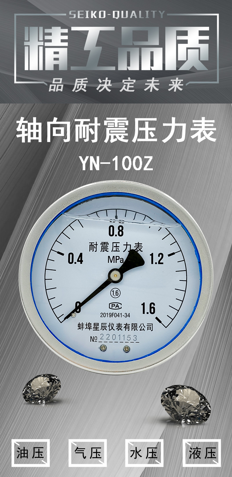 - Wide Compatibility: YN-100Z Series axial pressure gauge designed for universal use in water, air, oil, and liquid pressure systems, ensuring versatile application.