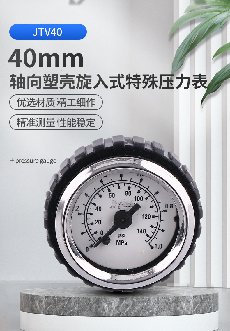 Axial Plastic Case Screw-in Pressure Gauge (40mm, 0-1Mpa/psi) for HVAC Systems