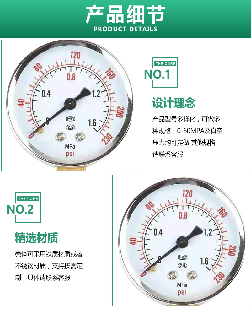 - Key Specs & Performance: Measures a wide range from -0.1 to 60 (presumably MPa or equivalent units), with precision accuracy grades of 1.0, 1.6, and 2.5, adapting to various measurement needs.