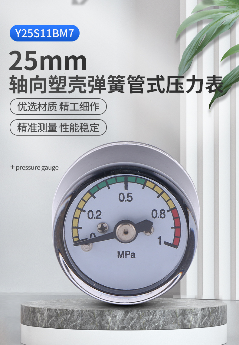 Axial Pressure Gauge 25mm Plastic Case Copper Connector Bourdon Tube Pressure Gauge for General Use Y25S11BM7