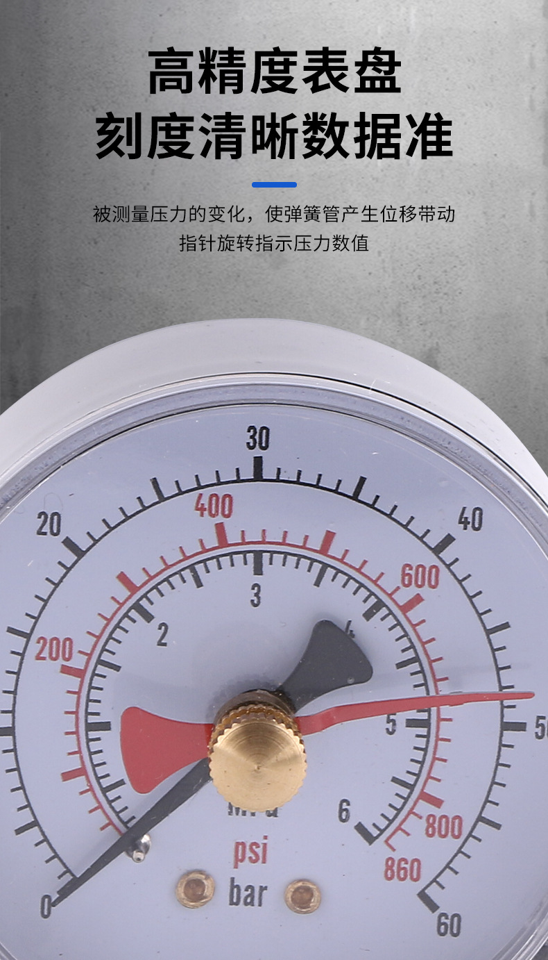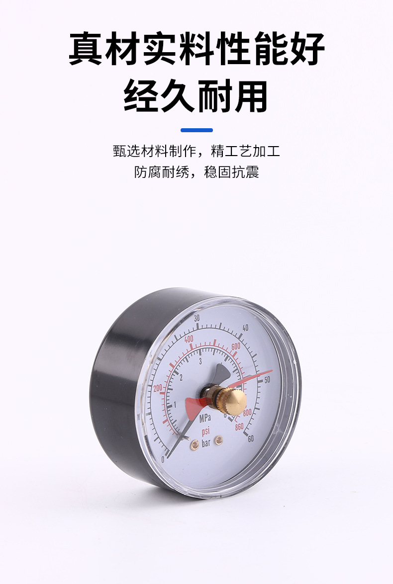 Axial Pressure Gauge 63mm Black Iron Case Copper Connector Ordinary Pressure Gauge For Air Pressure Systems