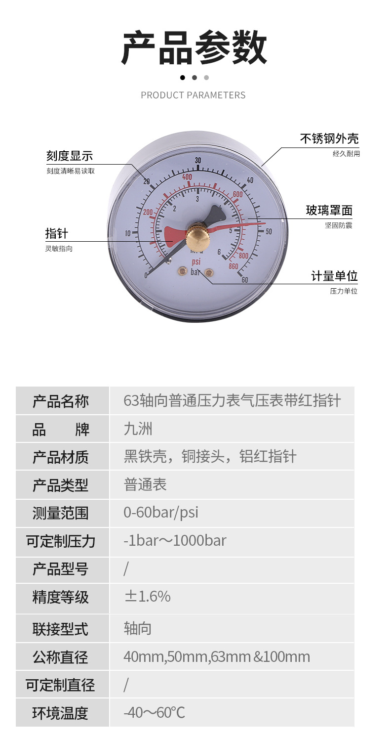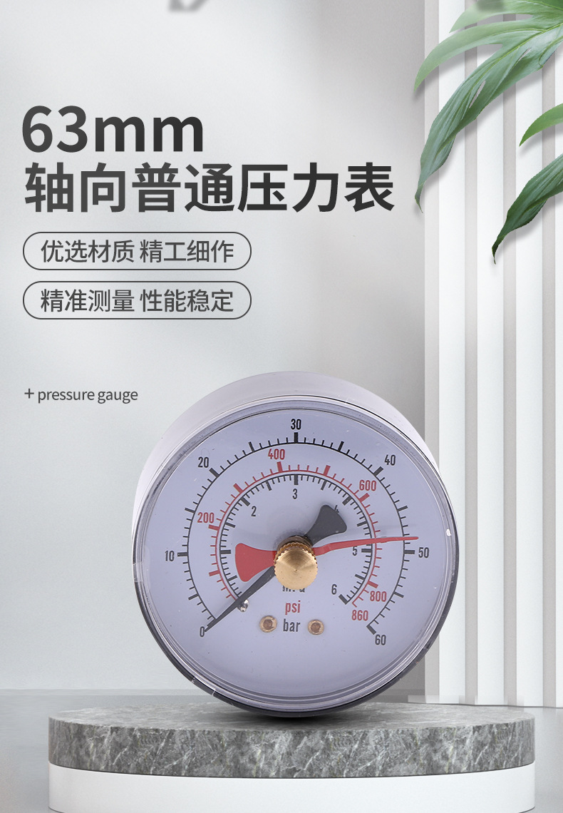 - What You Get: One 63mm axial pressure gauge. Built to operate reliably in environmental temperatures ranging from -40℃ to 60℃, ensuring dependable performance across various climates.