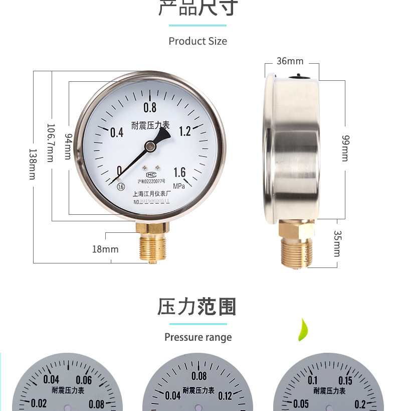 - Key Specs & Performance: Offers a precise 0-1.6 MPa measurement range with a 1.6 accuracy grade, providing reliable and clear pressure readings for optimal system operation.