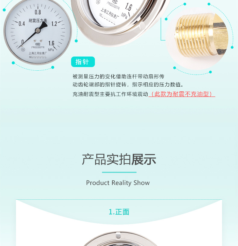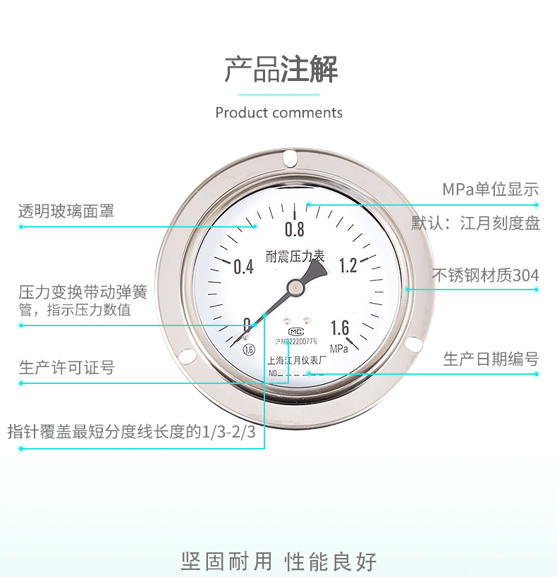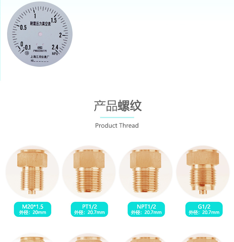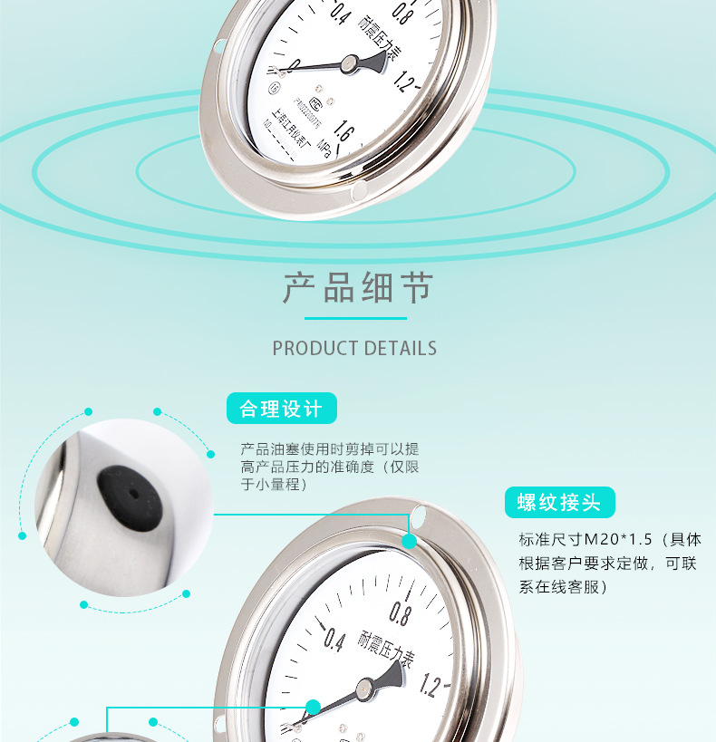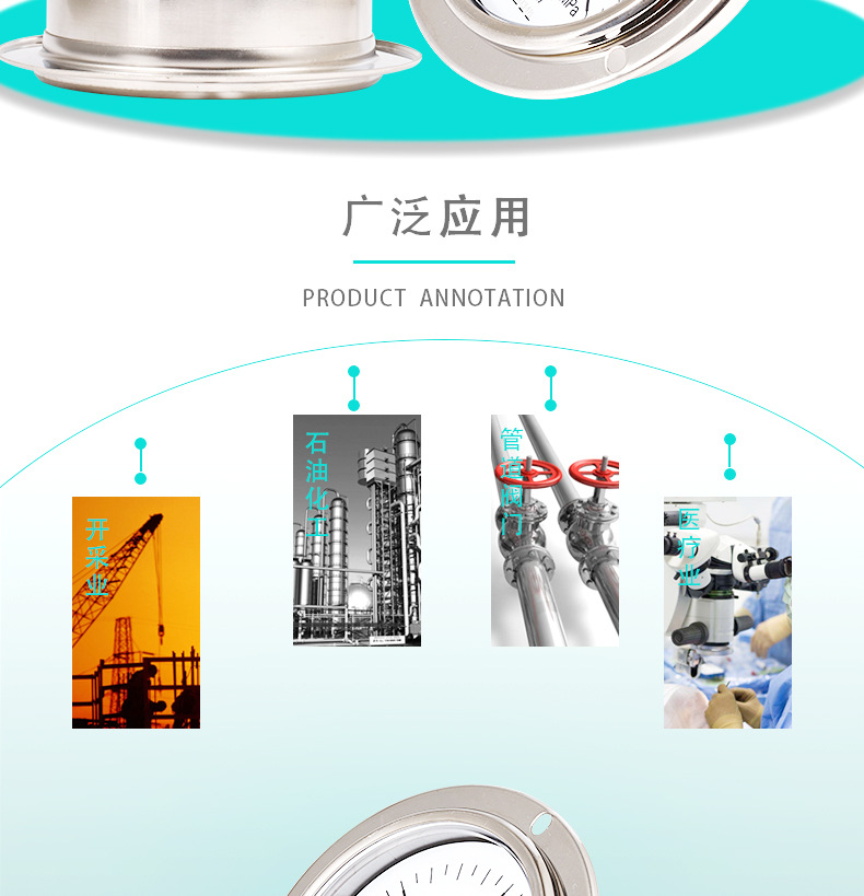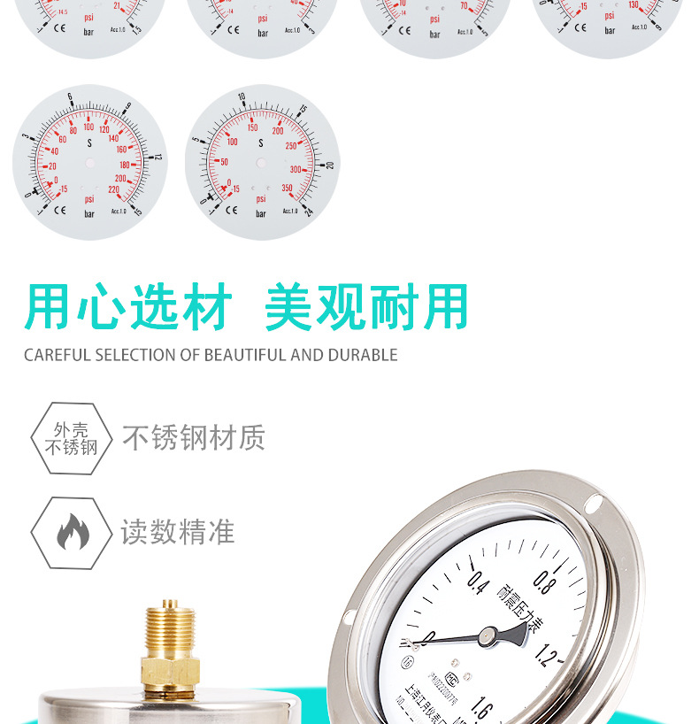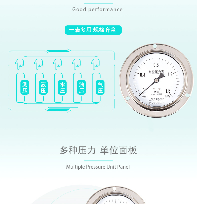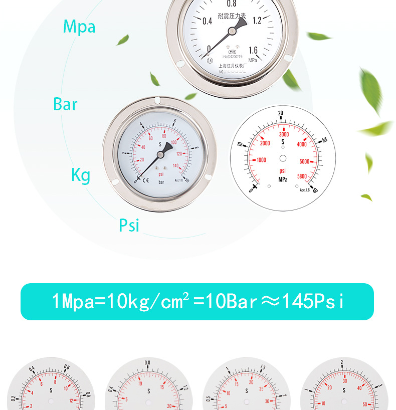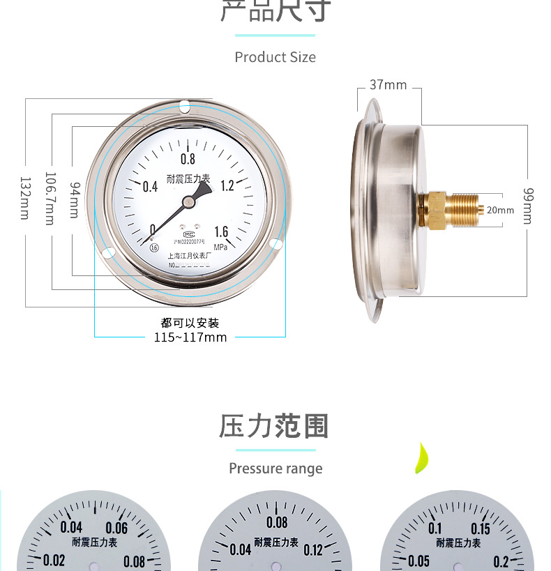 - Wide Compatibility: Jiangyue Y100/ZT axial pressure gauge is suitable for various oil and gas pressure systems, with multiple measuring ranges from vacuum to 40MPa.