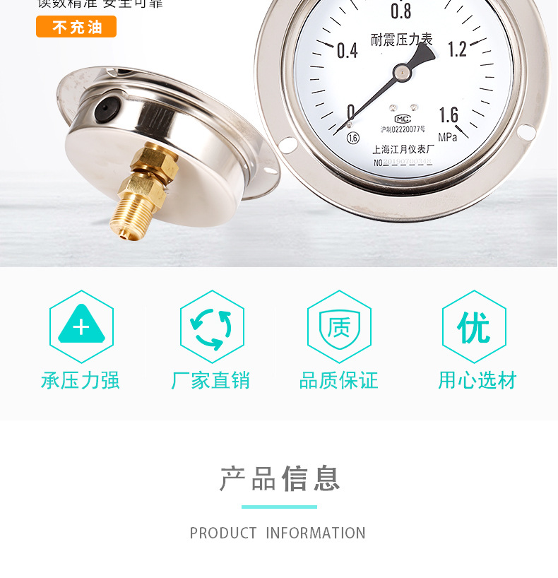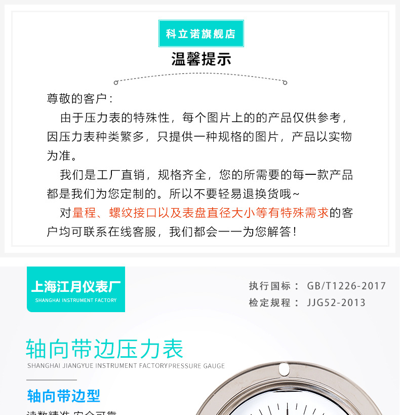 - What You Get: One Jiangyue Y100/ZT axial pressure gauge, factory direct with product inspection guarantee, offering reliable performance for your pressure measurement needs.